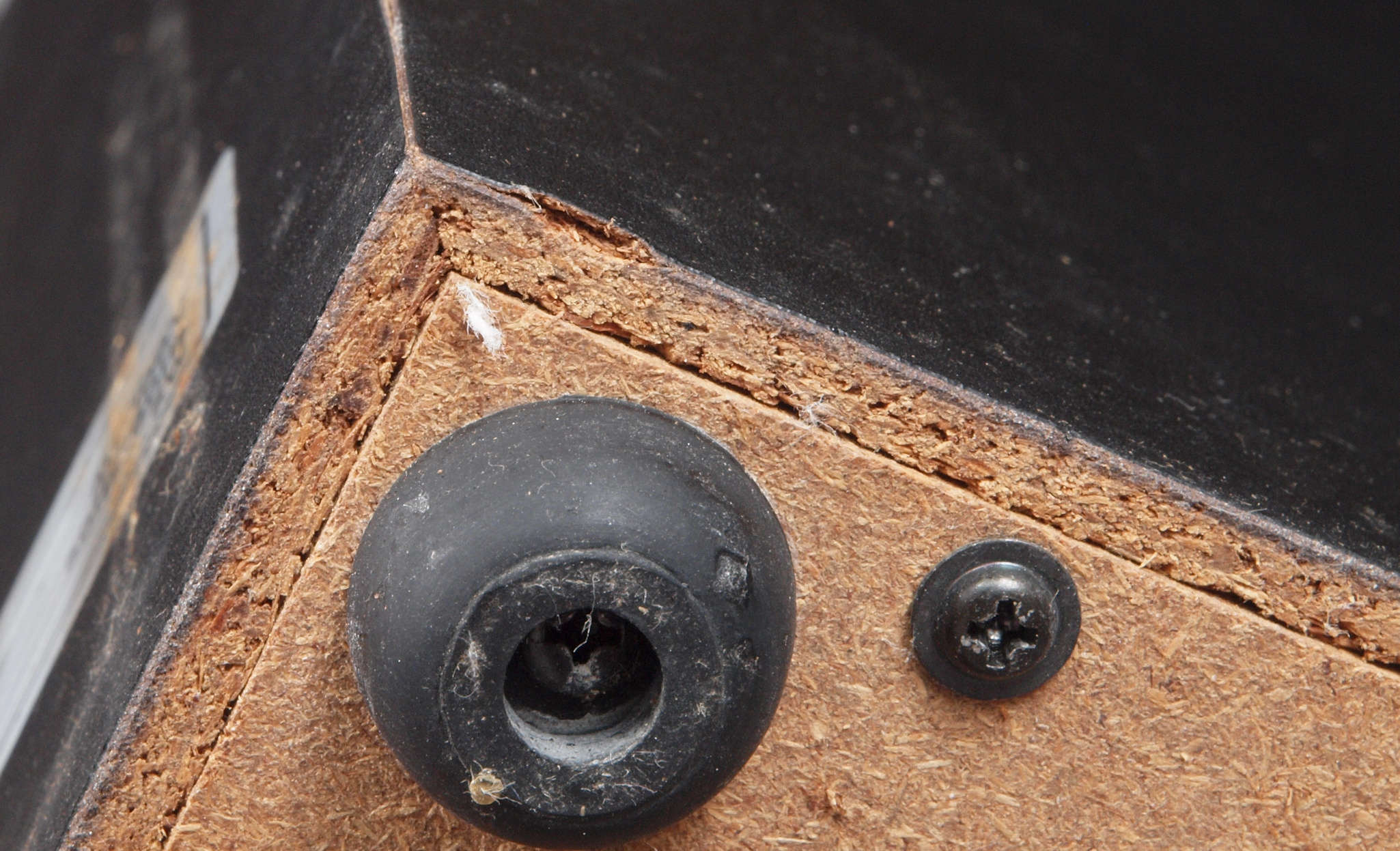 | C44. 修理前 接着材が劣化した木箱。左側。 |