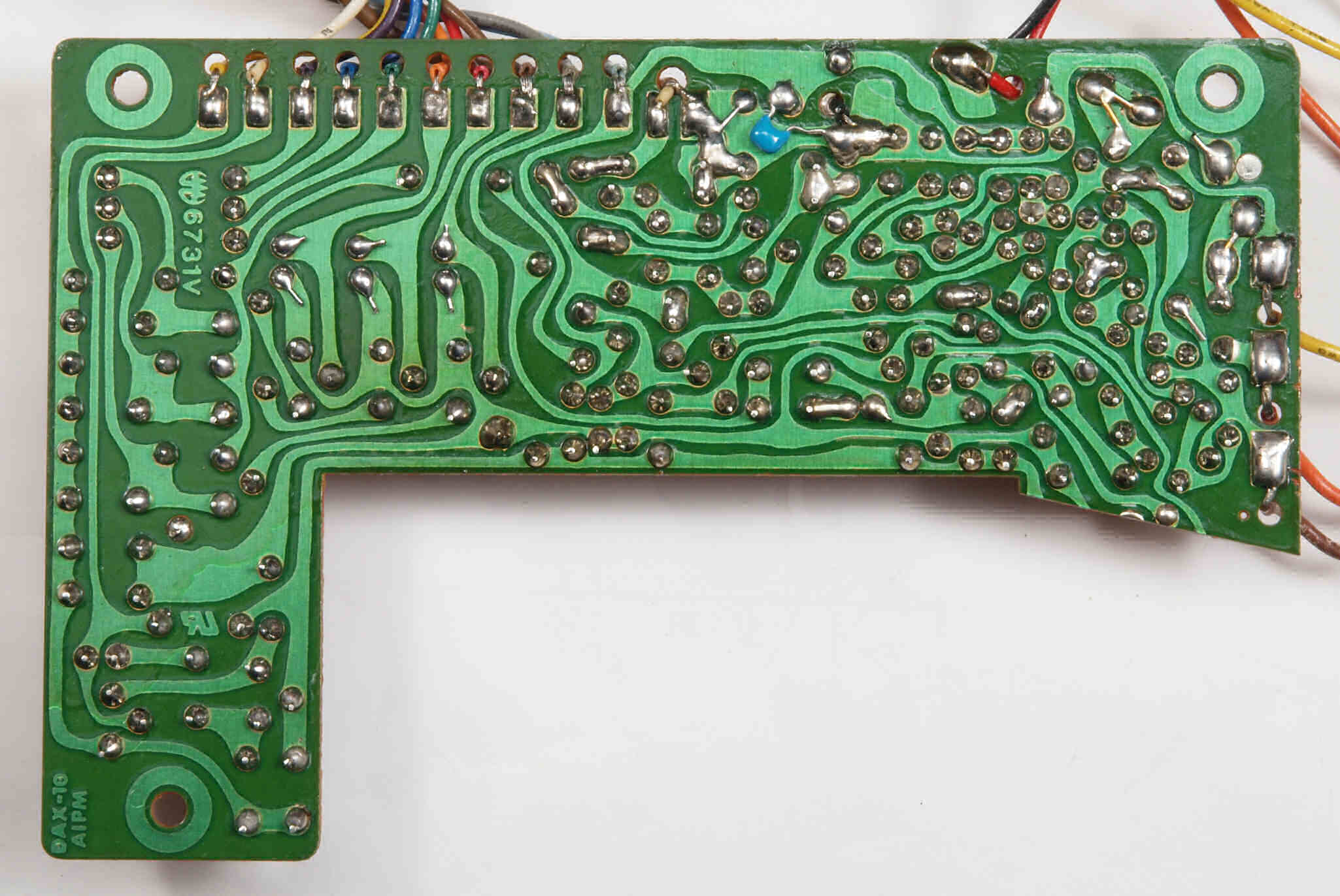 C14. 修理(再半田)後 電源・LED表示基板裏。 半田を全部やり直す。フイルムコンデンサー1個追加。