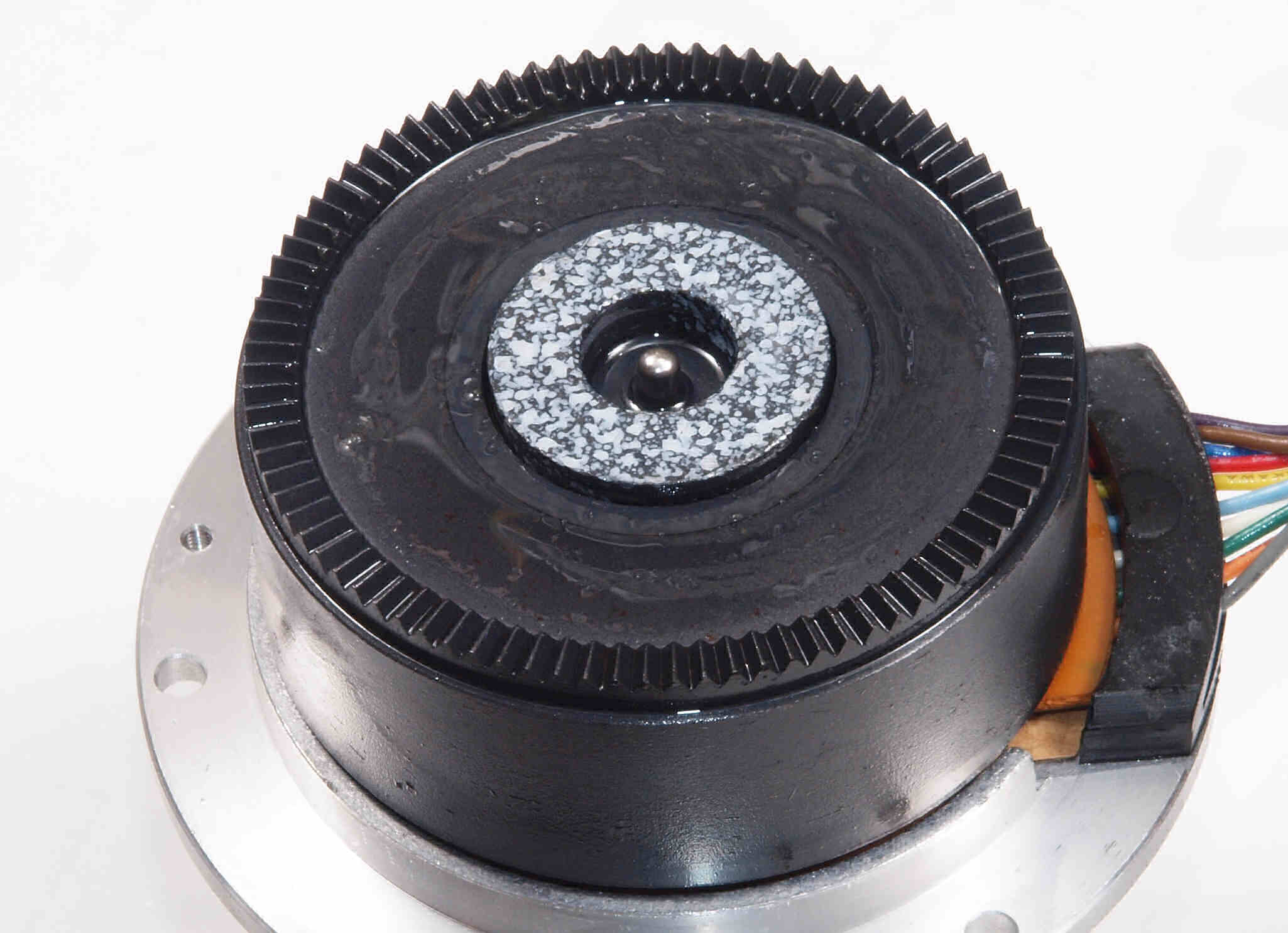 C64. 修理中、モータ回転子上側軸受を下から見る。 油分が無し。
