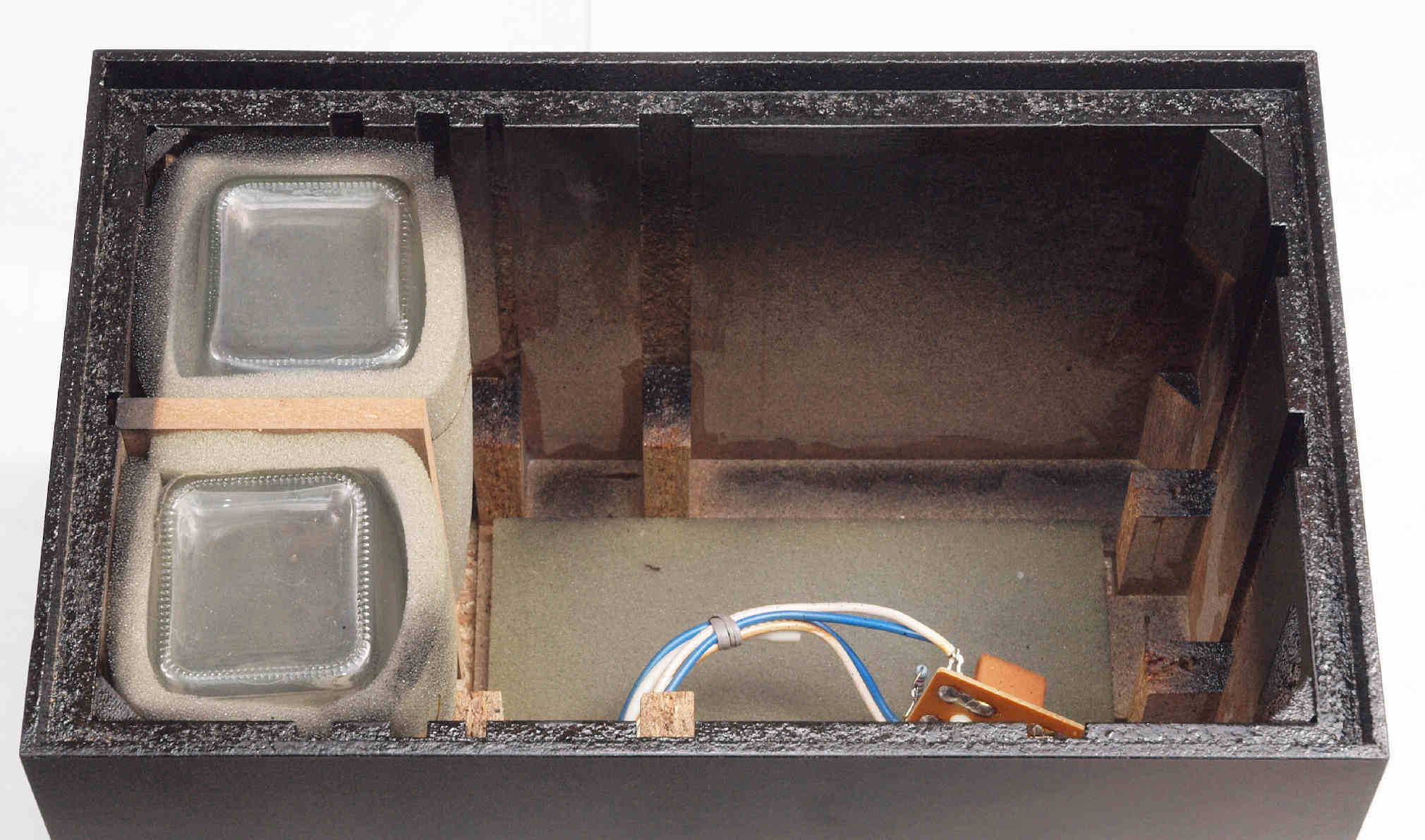 | C62. 修理中 木ネジで割れた、「ポンプ取り付け圧縮板」、「フューズ取付圧縮板」、ボンドを染みこませる。 |