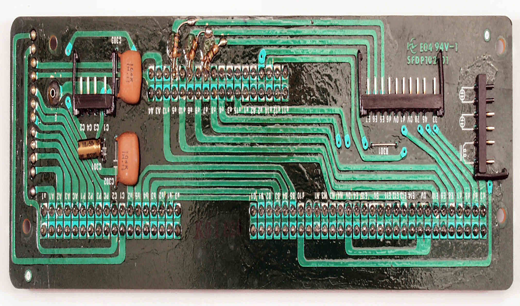 C−7E. 修理(半田補正)後 メイン基板裏。全ハンダをやり直す。