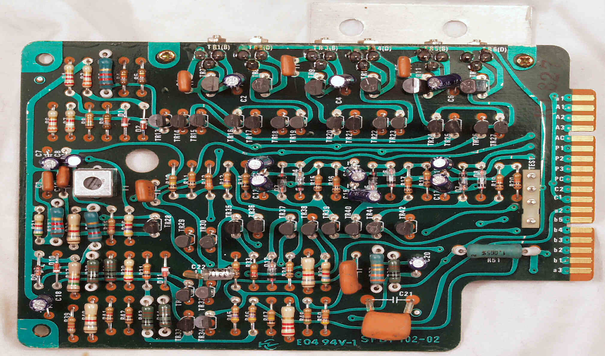 C−4B. 修理後 基準発生・速度切替え分周基板 電解コンデンサー7個交換