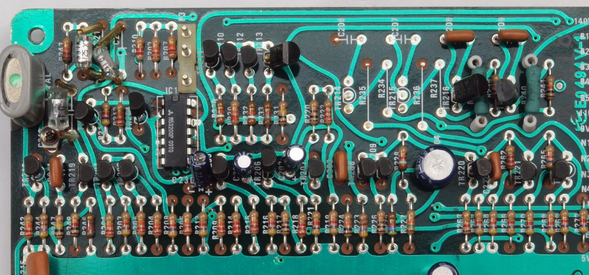 | C73. 修理(半田補正)後 メイン基板。全ハンダをやり直す。電解コンデンサー1個、フイルムコンデンサー2個交換。 | ||||||||||||||||||||||||||||||||||||