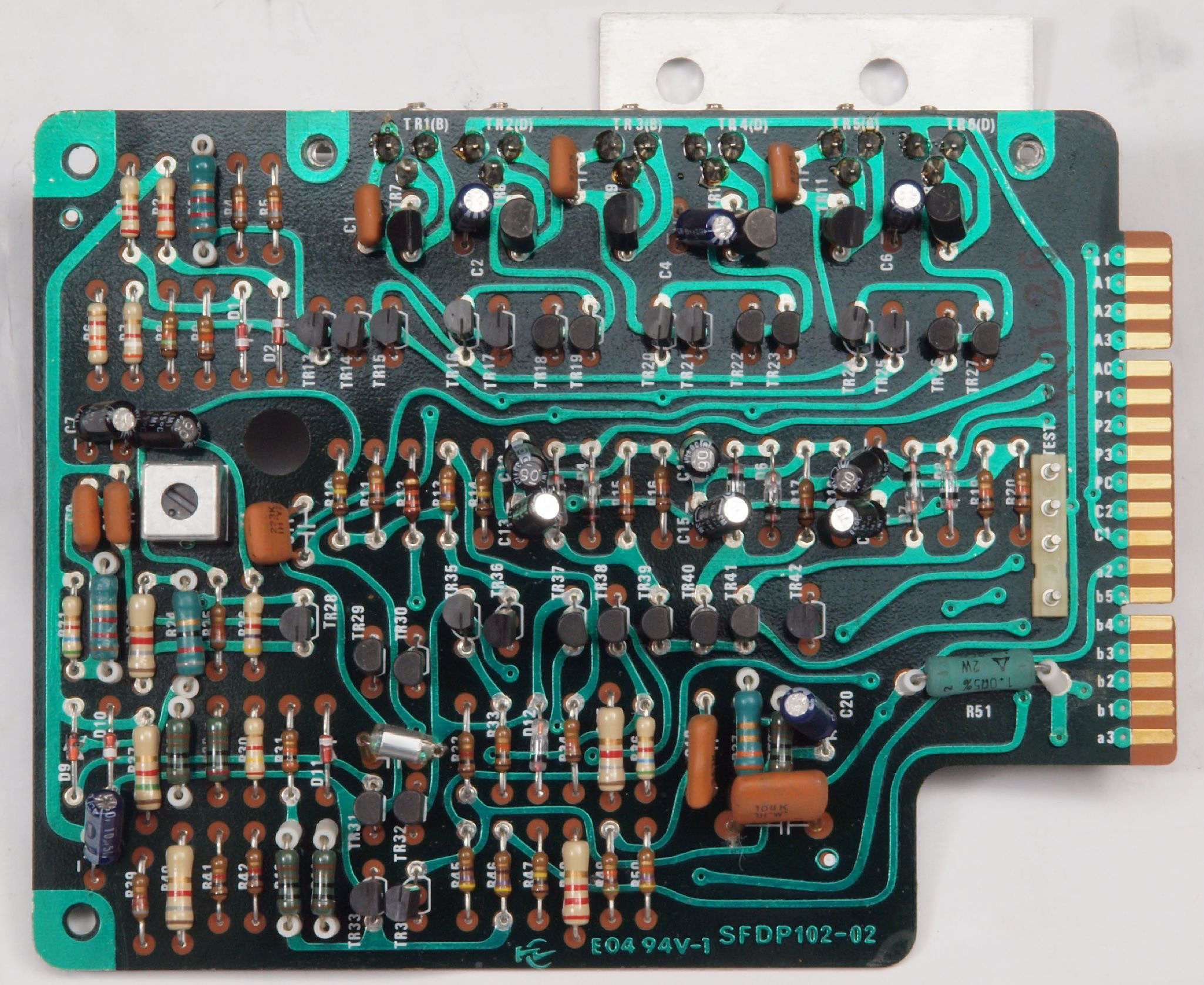 | C43. 修理後 基準発生・速度切替え分周基板 電解コンデンサー7個、フイルムコンデンサー16個交換 | ||||||||||||||||||||||||||||||||||||