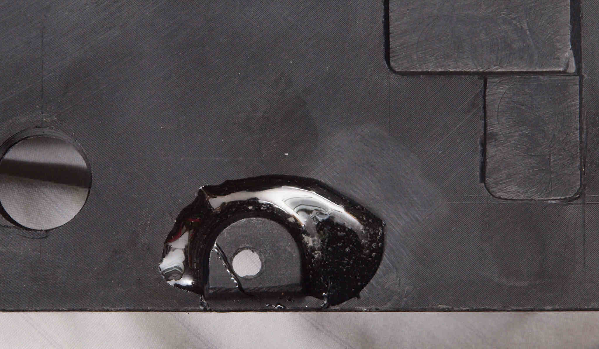| M83. 修理後 割れて取れた、下カバー取り付け穴。さらに2液性接着材で固定する。 | ||||||||||||||||||||||||||||||||||||||||