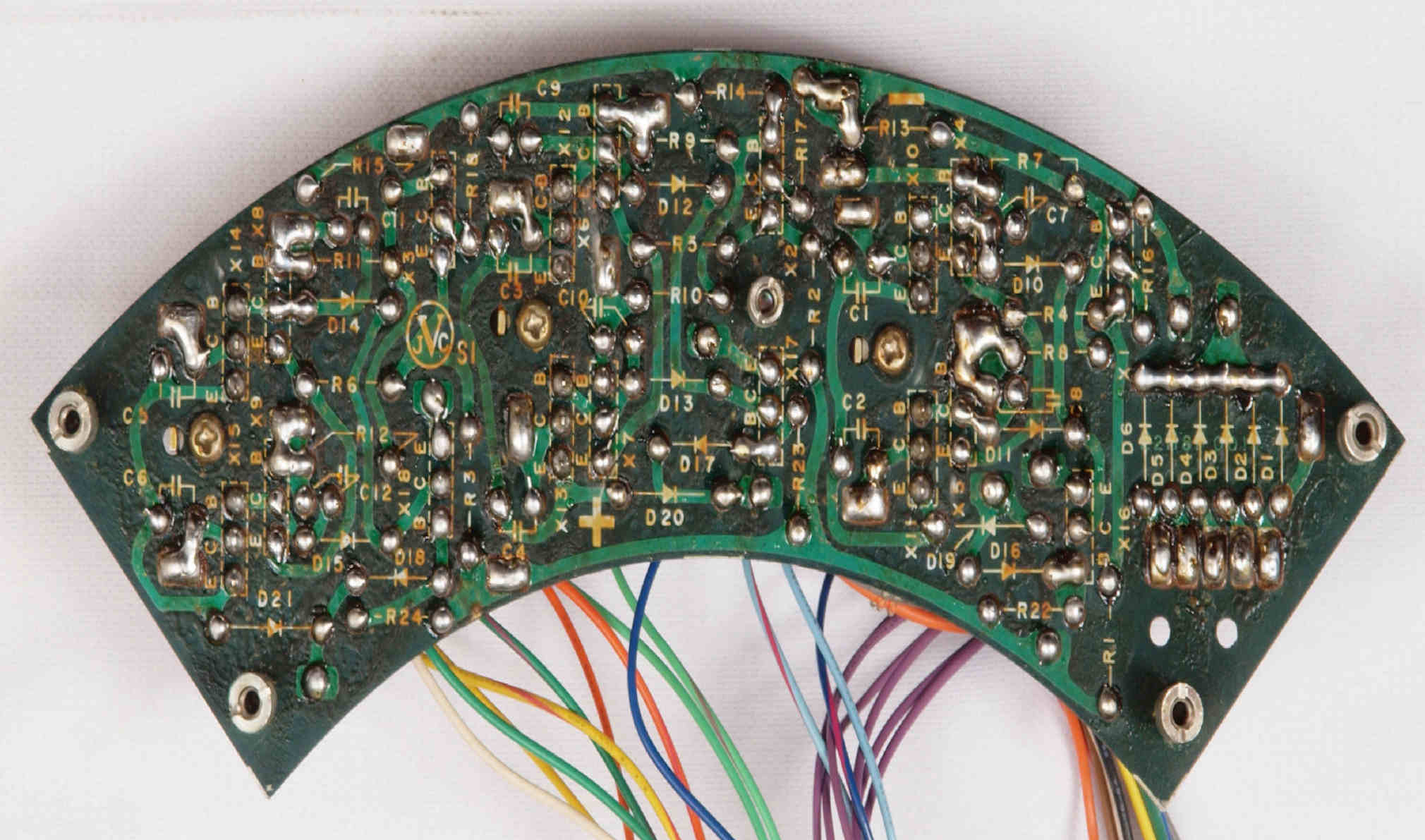 C12. 修理後 基板 半固定VR2個、電解コンデンサー10個、TR(トランジスター)8個交換