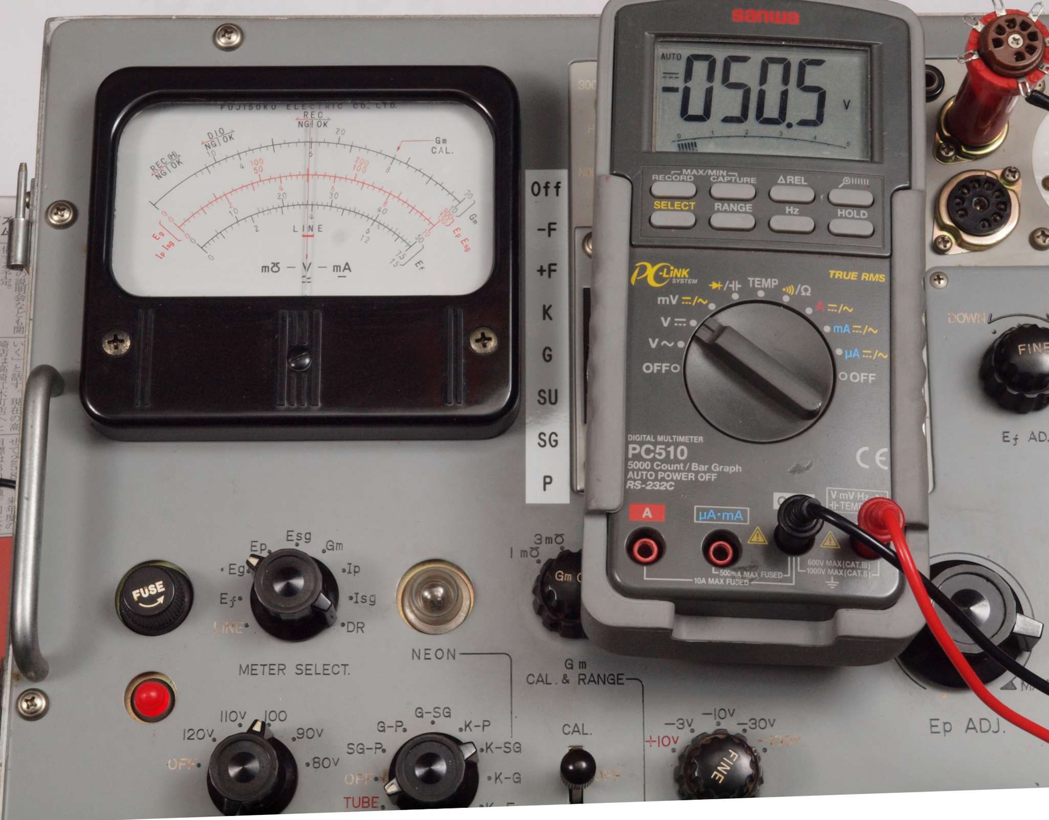E2. 真空管ピン選択ホイール2番のGの所をドライバーで叩くと、接触不良でフルスケール。