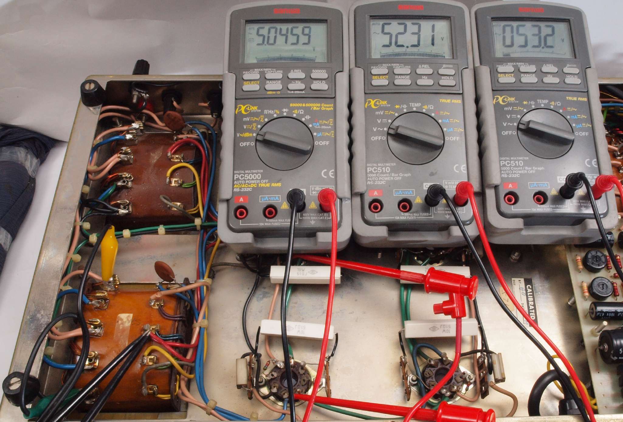 | Q7.QUADU.7台目出力トランス点検、 修理の様子はこちら 8ΩSP出力端子へAC5V/1kHzを入力し、各巻線電圧を測る。