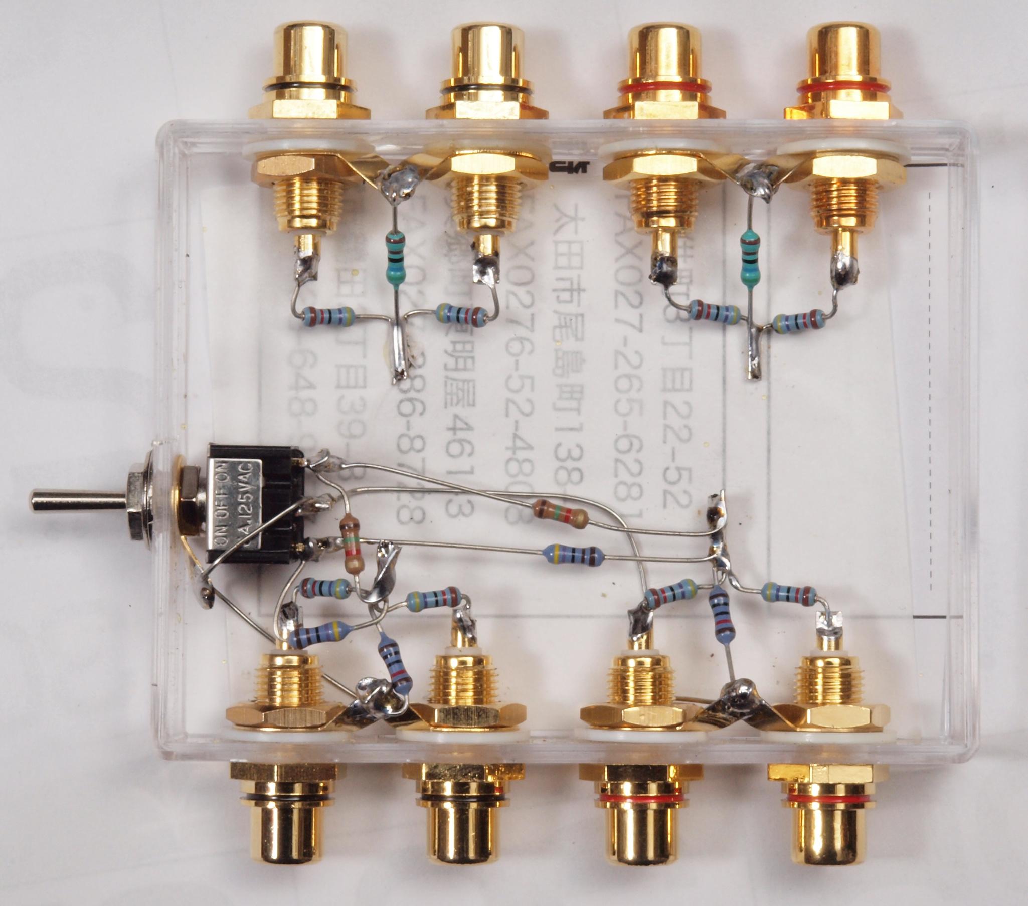 | 64. 2回路を組み込んだ物。 インピーダンス50KΩ、約20dB(10分の1)減衰。 |