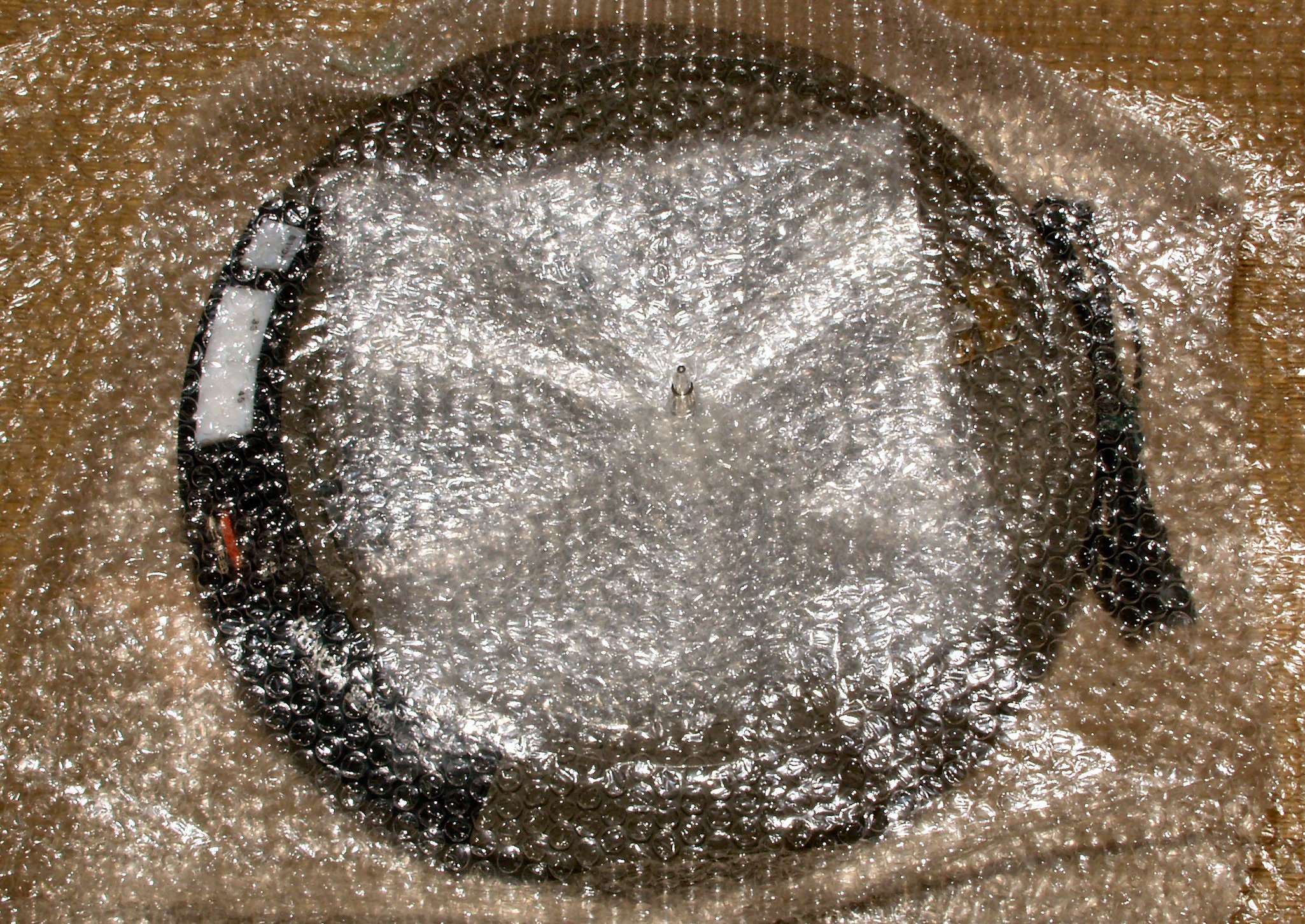 H1. 梱包の様子、 4角をしっかりと押さえている。