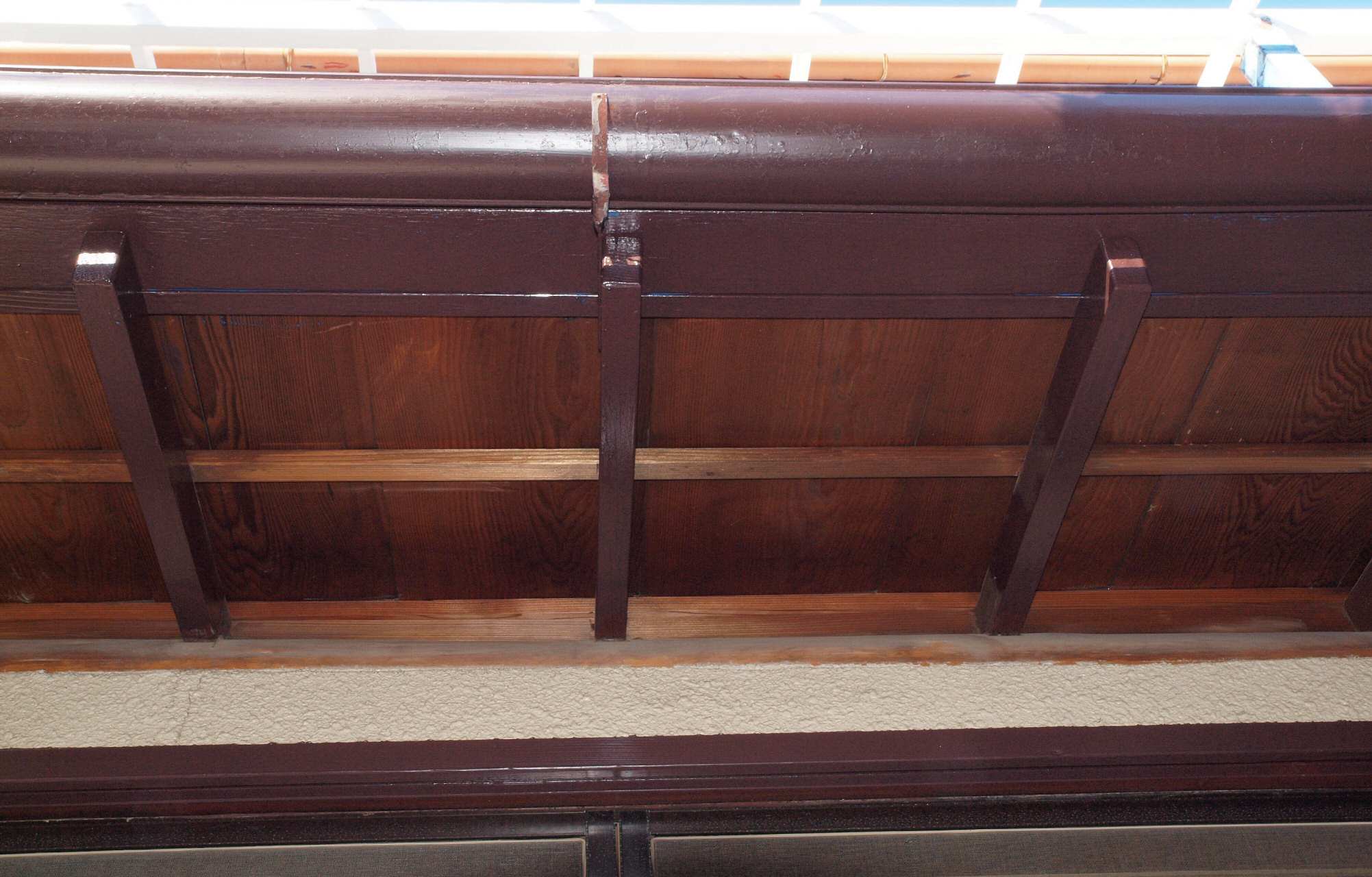 | 32. 修理中 1F南側軒天中央部、1回目の塗装終了。 |