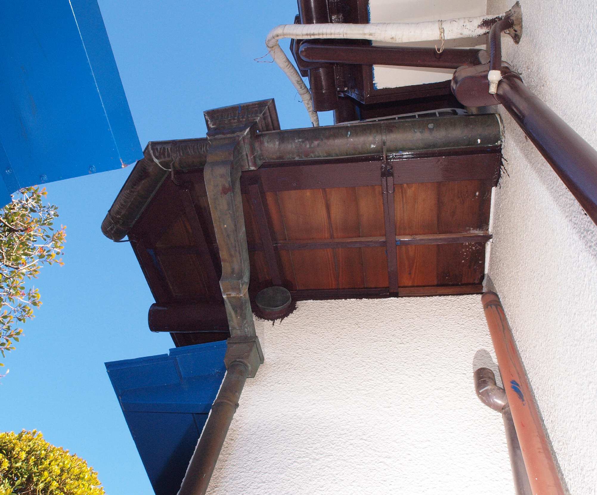 32. 塗装中 西側軒天、1回目の塗装終了。