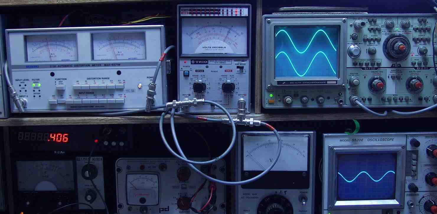 | E−2A. 出力/歪み率測定・調整 出力=25V=78W 歪み率0.07% at=1000HZ AUX端子入力 |