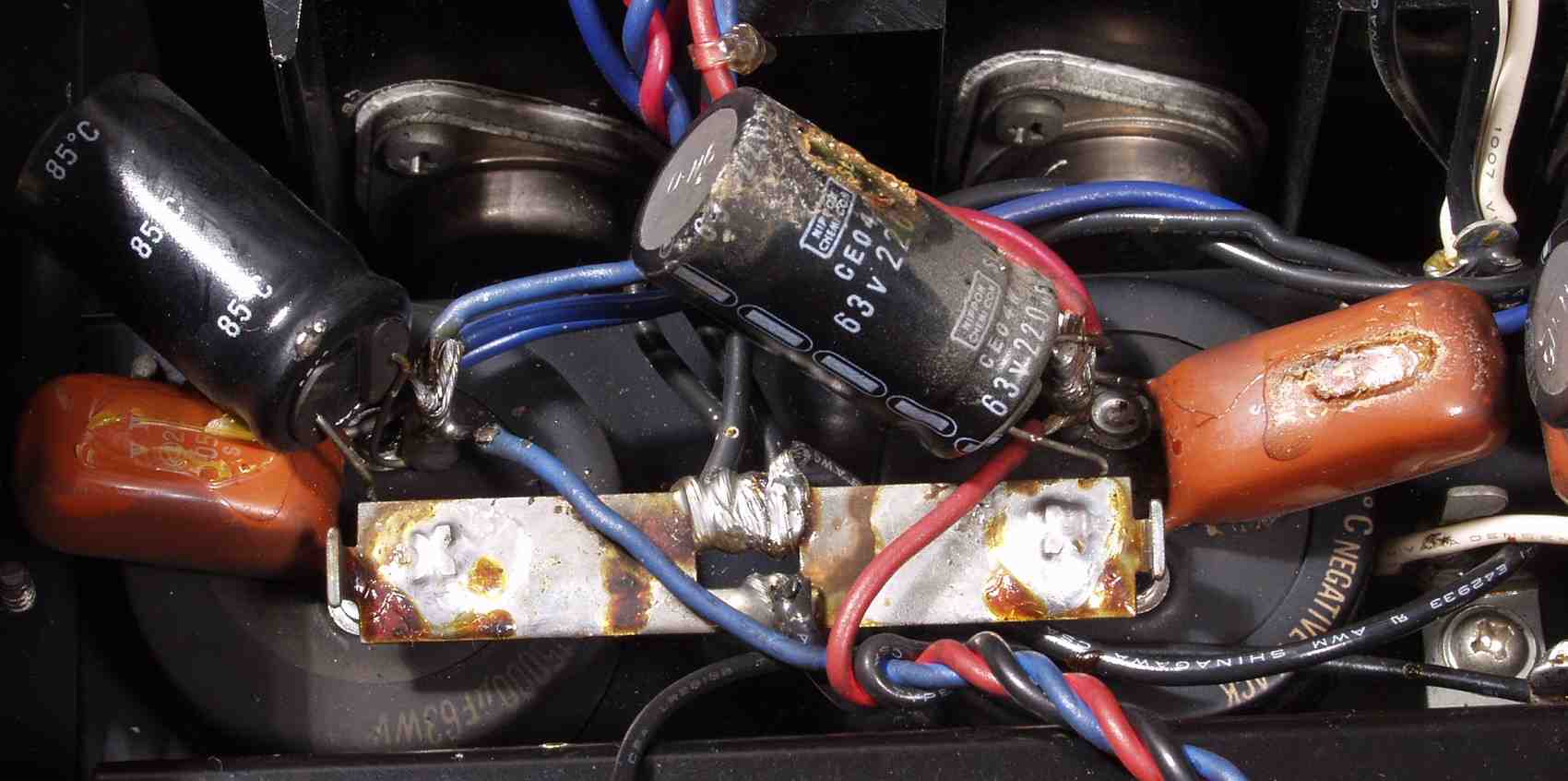 | A4. 修理前 上からブロック電解コンデンサー見る 1本おきに磨いた | ||||||||||||||||||||||||||||||||||||||||||||||||||||||||||||||||||||||||