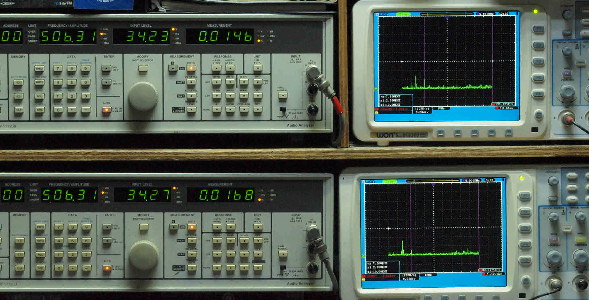よって、ダイアル設定出力レベルより低くなります。測定機器の仕様や整備の様子はこちら、「VP−7723B」「VP−7201A」。 FFT画面の見方はこちら。