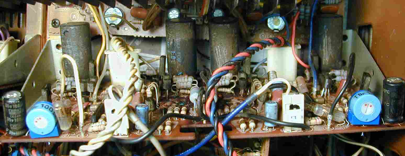 下の基板の左右のバイアス用半固定VR(ボリューム)はは新しく交換した物 |