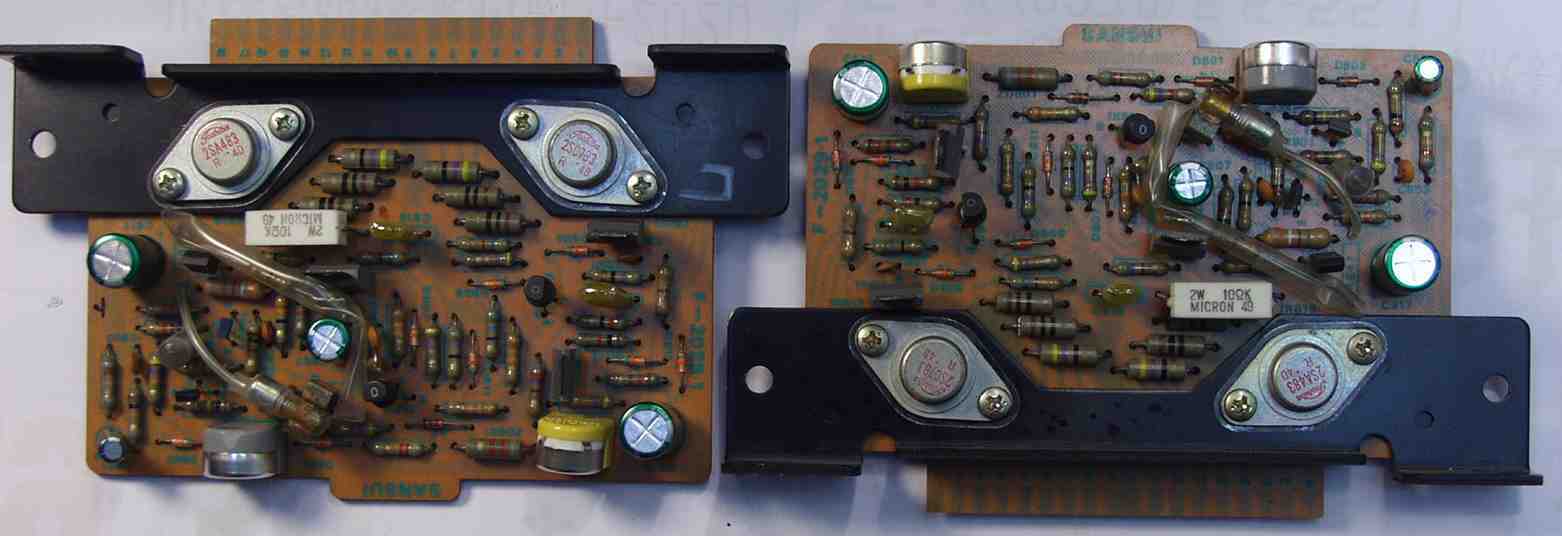 | C−3B. 修理後 終段基板 TR(トランジスター)4個、半固定VR4個、電解コンデンサー8個、フイルムコンデンサー4個交換 | ||||||||||||||||||||||||||||||||||||||||||