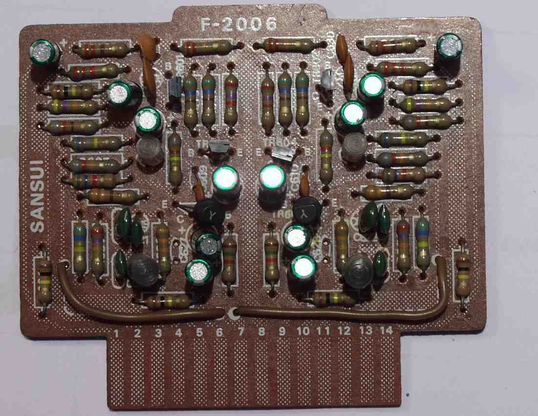 | C6B. 修理後 EQ−AMP基板 TR(トランジスター)4個、電解コンデンサー12個 交換 | ||||||||||||||||||||||||||||||||||||||||||