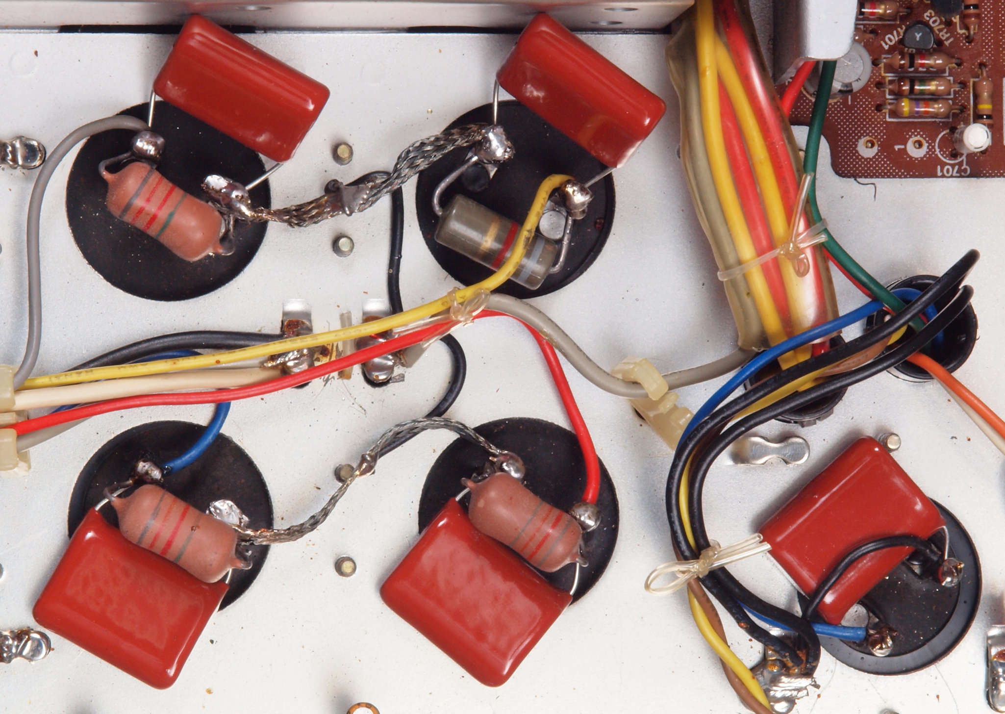 | C212. 修理前 R側終段基板。 抵抗に塩分が結晶? | ||||||||||||||||||||||||||||||||||||||||||
