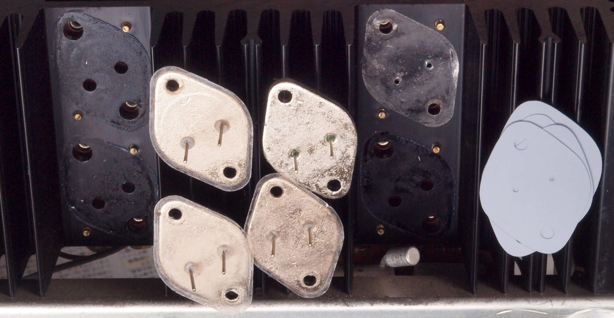 | C. 修理状況。 画像をクリックすると、大きく(横幅2050ドット)表示されます。 C11. 修理前 R側 終段トランジスター。 |