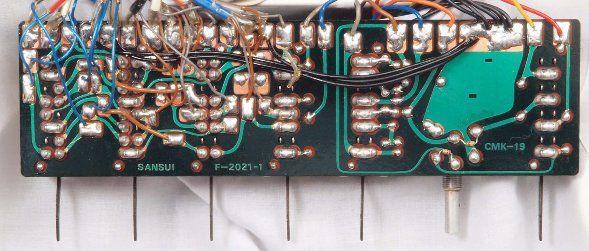 | C61. 修理前 EQ−AMP基板。 TR(トランジスター)が4個交換されている。 | ||||||||||||||||||||||||||||||||||||||||||