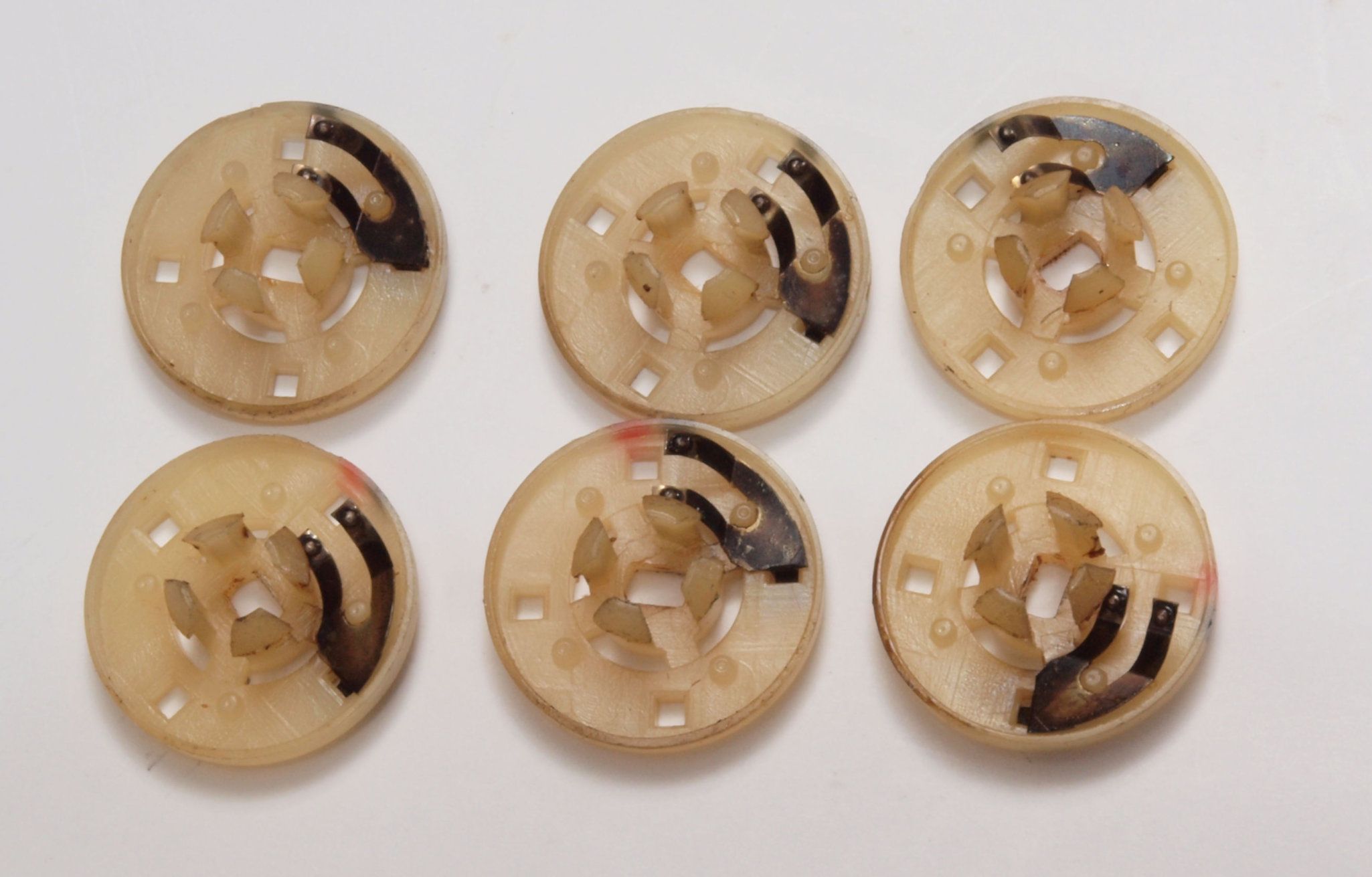 | C75. 修理中 TONE−VR基板SW。 左=清掃前、右2個=清掃後。 | ||||||||||||||||||||||||||||||||||||||||||