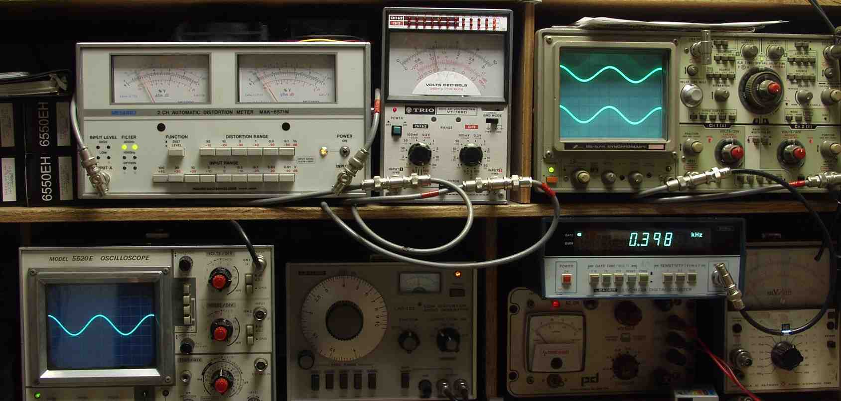 E5. 出力/歪み率測定・調整  出力=36V=162W 歪み率0.02% at=400HZ MM端子入力