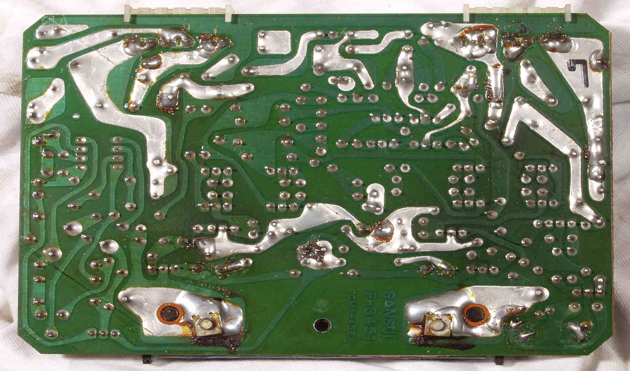 C5D. 修理後(半田補正) L−EQ−AMP基板裏  全ての半田をやり修す+不要なフラックスを取り、清掃後。