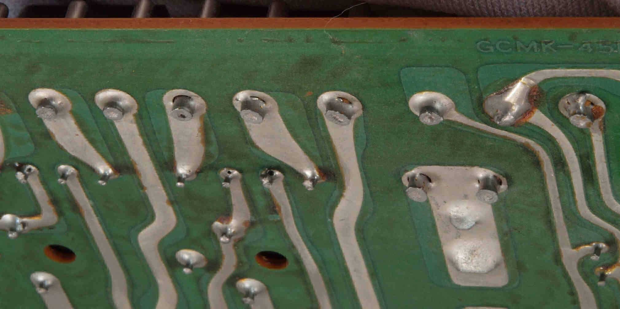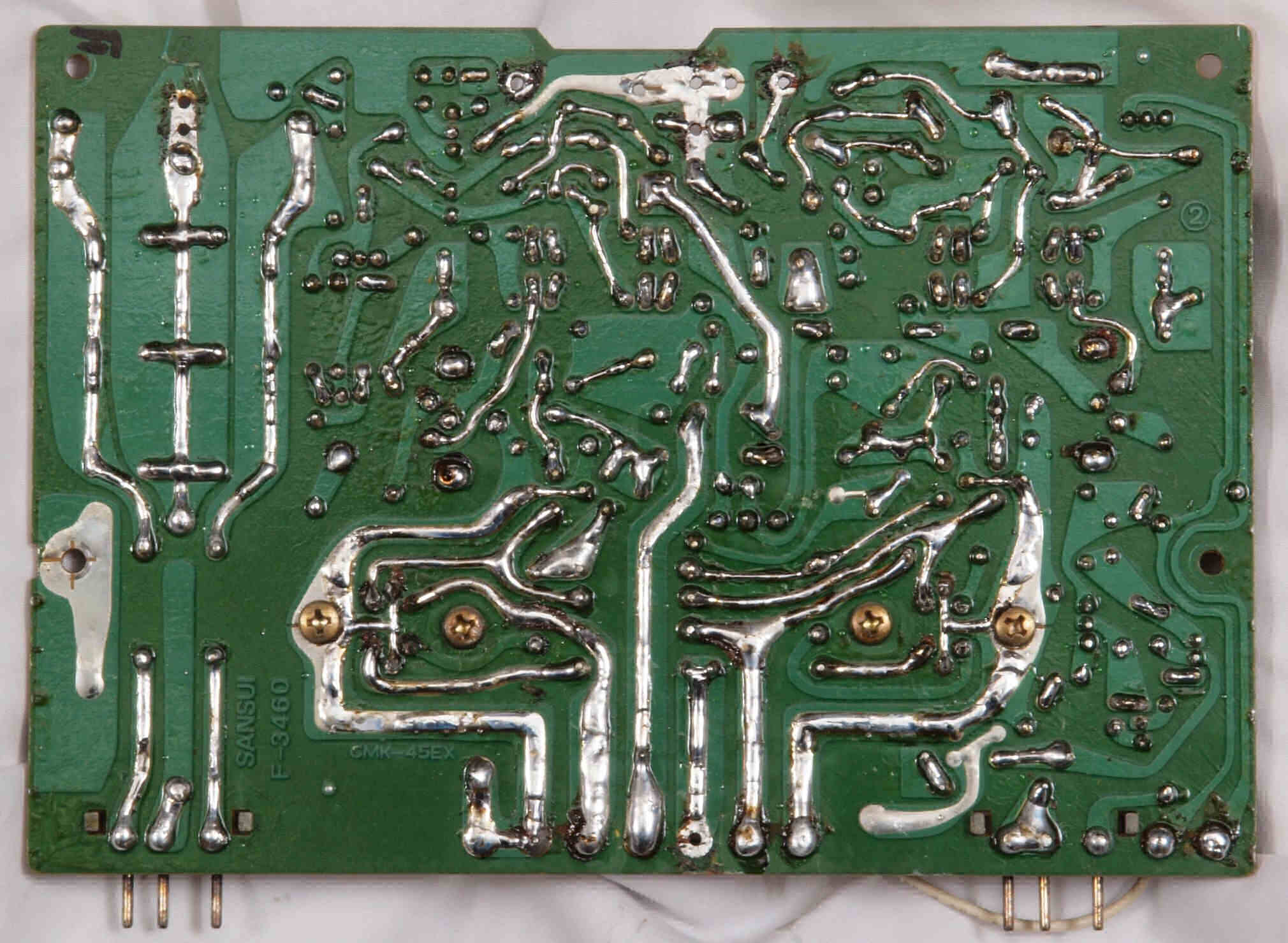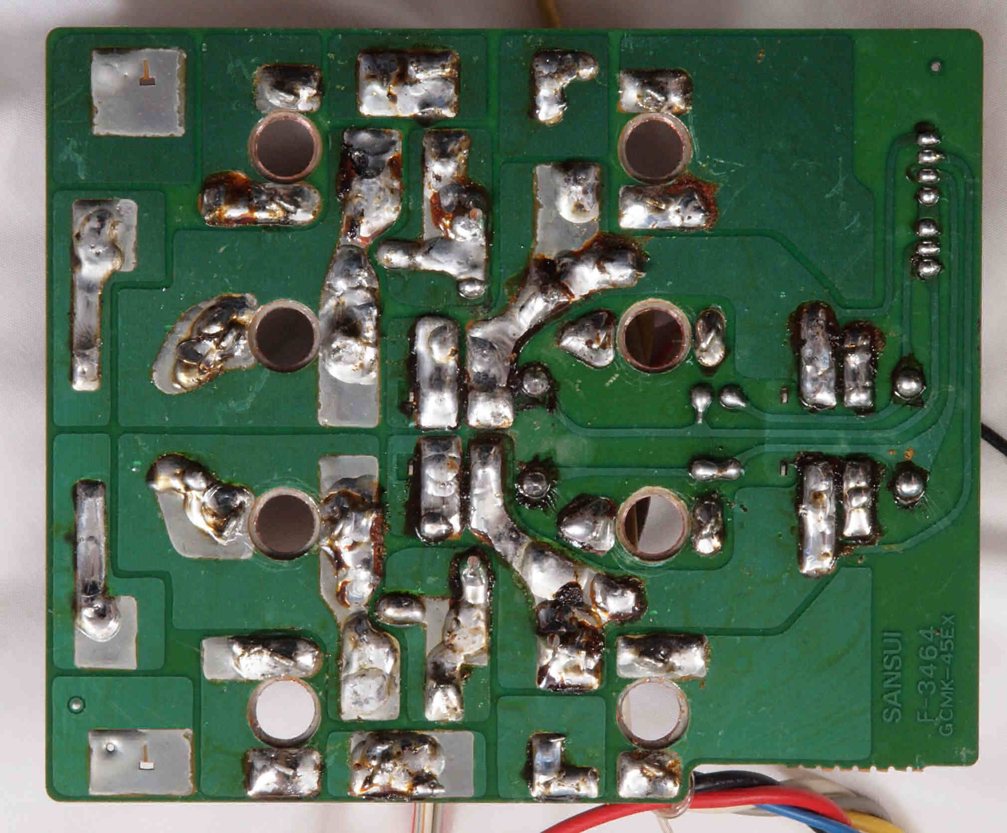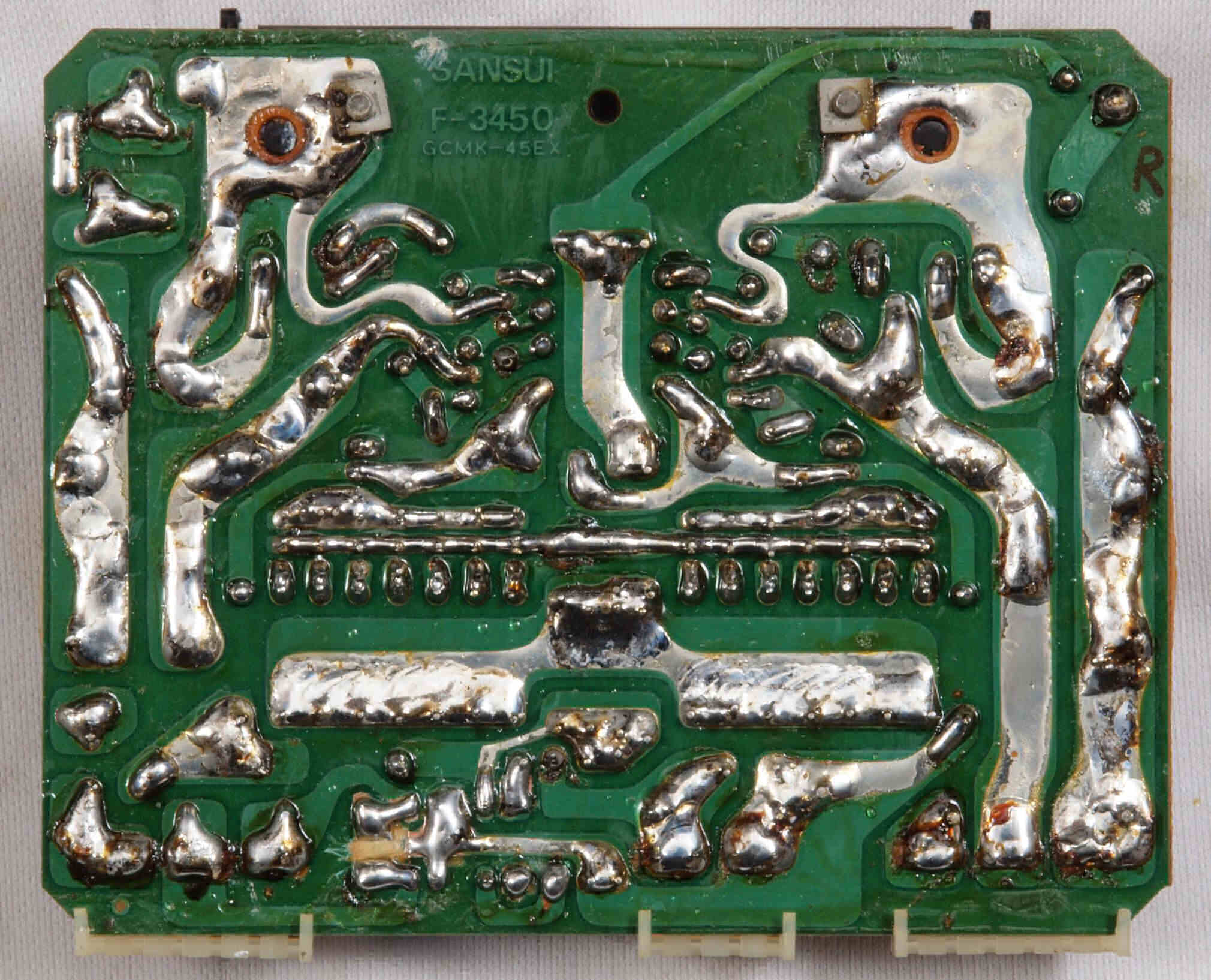 C14. 修理後(半田補正) R側終段基板裏、 全ての半田をやり修す。