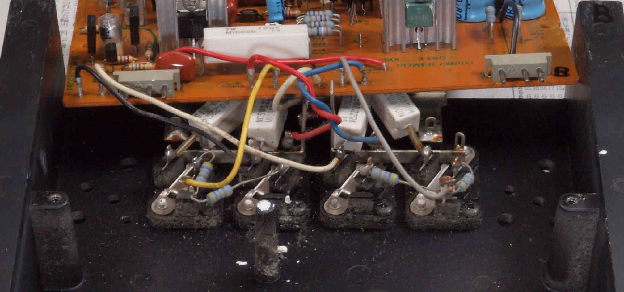 CB. 修理後 L側終段ブロック。 基板への配線は古く劣化しているので、収縮チューブで固定。
