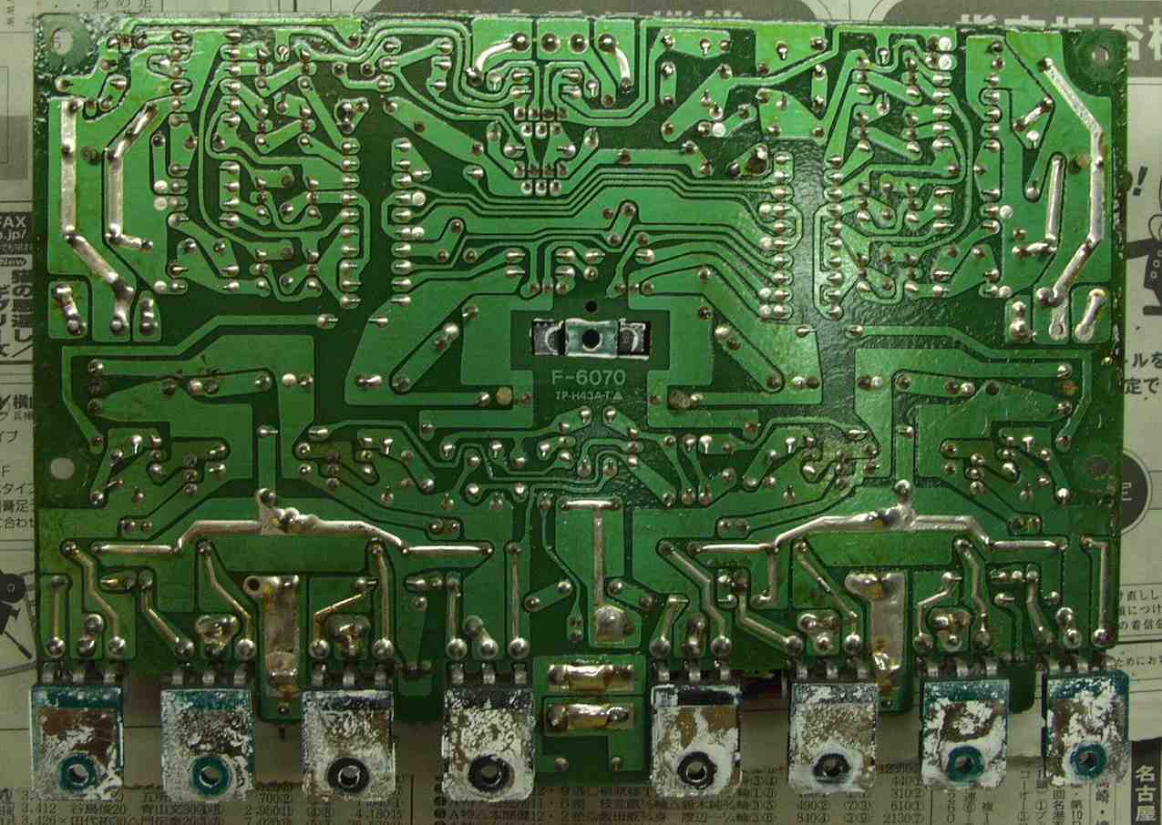 | 13. 修理後(半田補正後) 終段AMP部基盤 全ての半田をやり修す | ||||||||||||||||||||||||||||||||||||||||||||||||||||||||||||