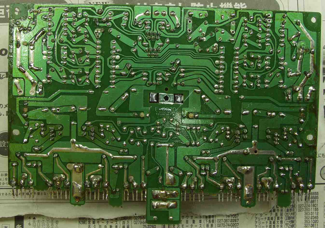13. 修理後(半田補正後) 終段AMP部基盤  全ての半田をやり修す