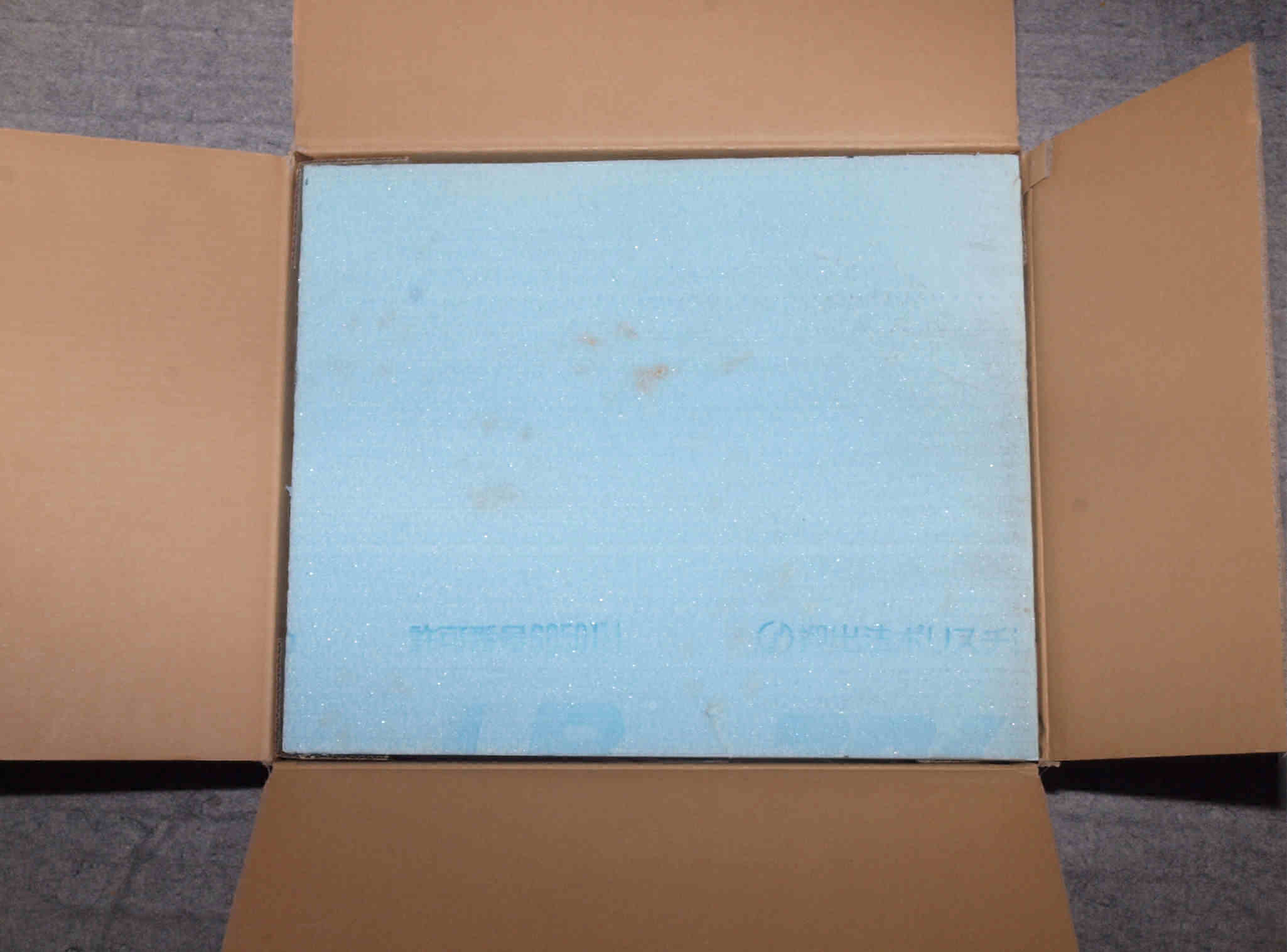 | K. 梱包の状況。 画像をクリックすると、大きく(横幅2050ドット)表示されます。 K1. 点検中 スタイロホームで上と4角を押さえてある。 |
