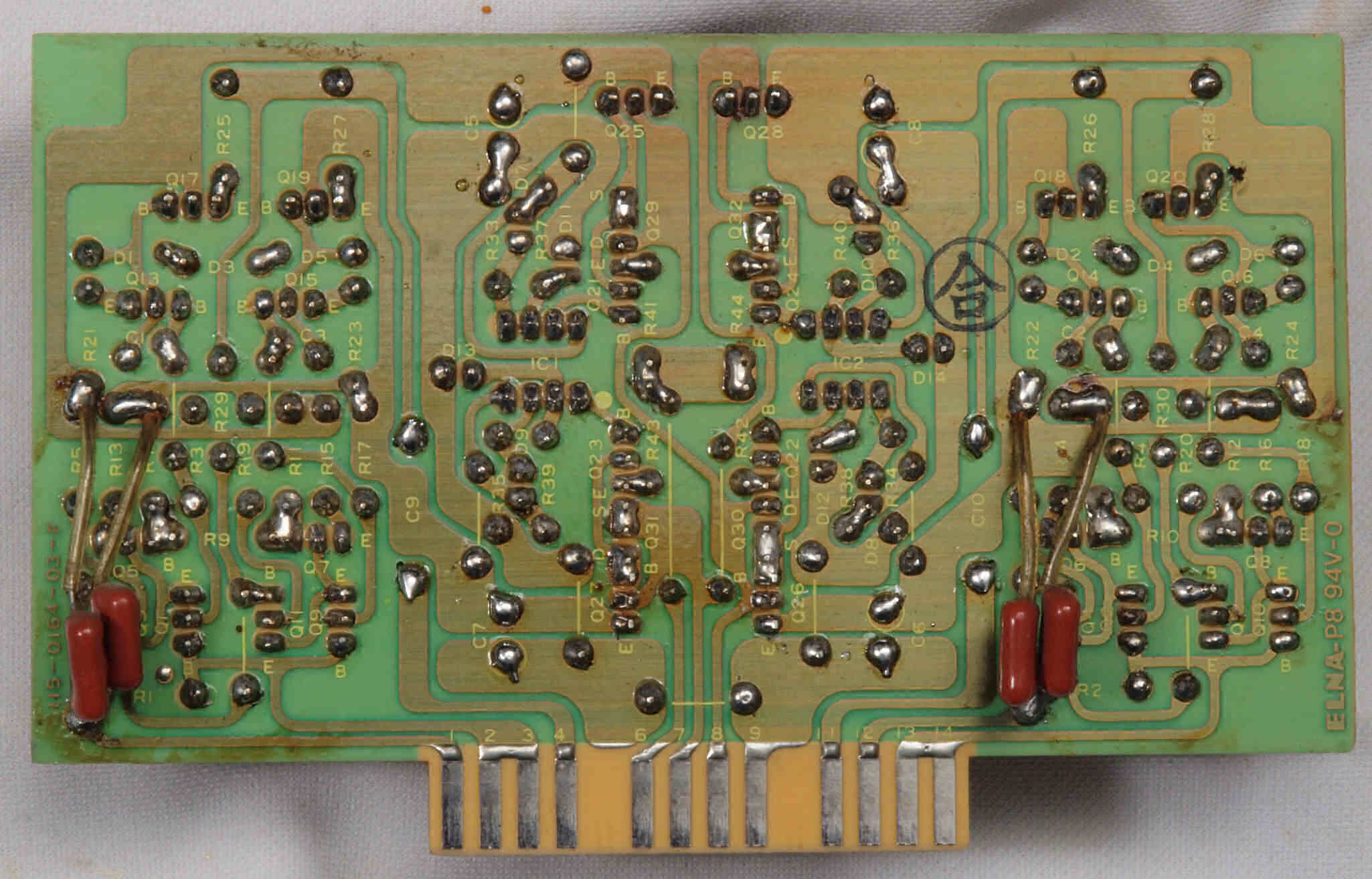 | C213. 修理後 R側EQ_AMP基板。 トルエン溶媒の接着剤を取り去り、コートを塗布後。 | ||||||||||||||||||||||||||||||||||||||||||||||