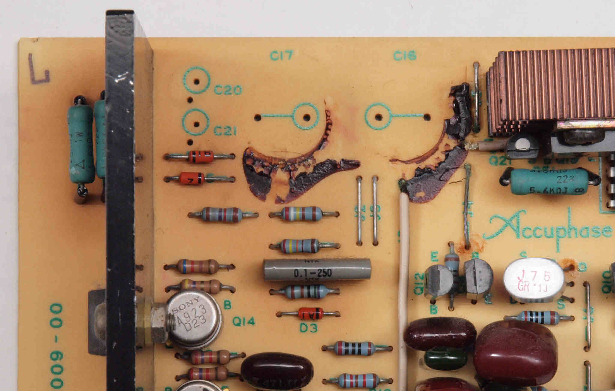 | C313. 修理後 L側EQ_AMP基板。 トルエン溶媒の接着剤を取り去り、コートを塗布後。 | ||||||||||||||||||||||||||||||||||||||||||||||
