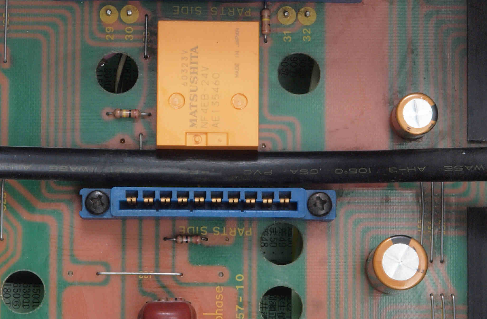 | CB5. 修理(交換)後 入出力端子郡。 太く重いケーブルを装着するので、接着剤で固定する。 | ||||||||||||||||||||||||||||||||||||||||||||||