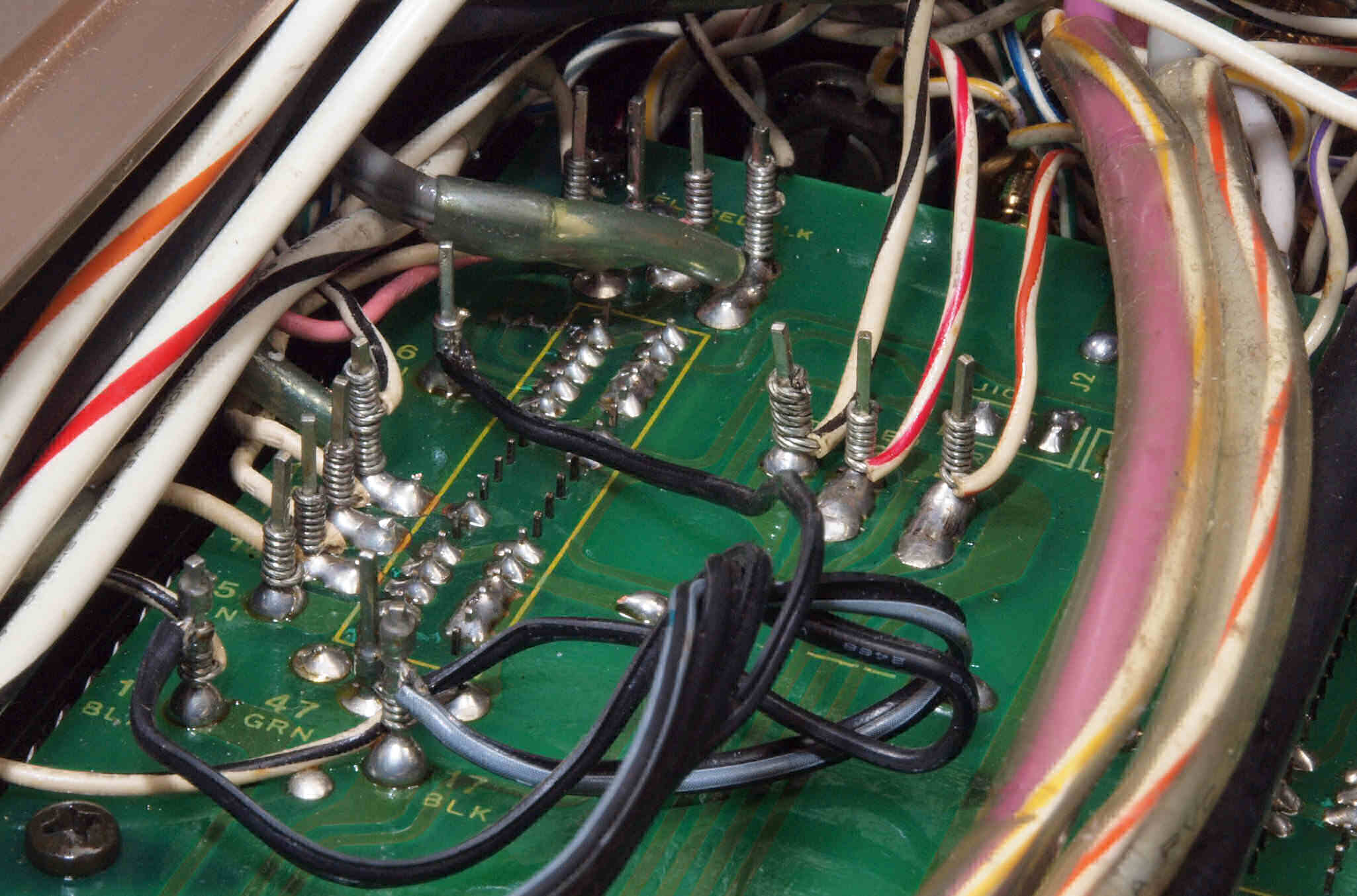 | CB6. 修理前 入出力端子郡裏配線。アース銅板が付いている。 | ||||||||||||||||||||||||||||||||||||||||||||||