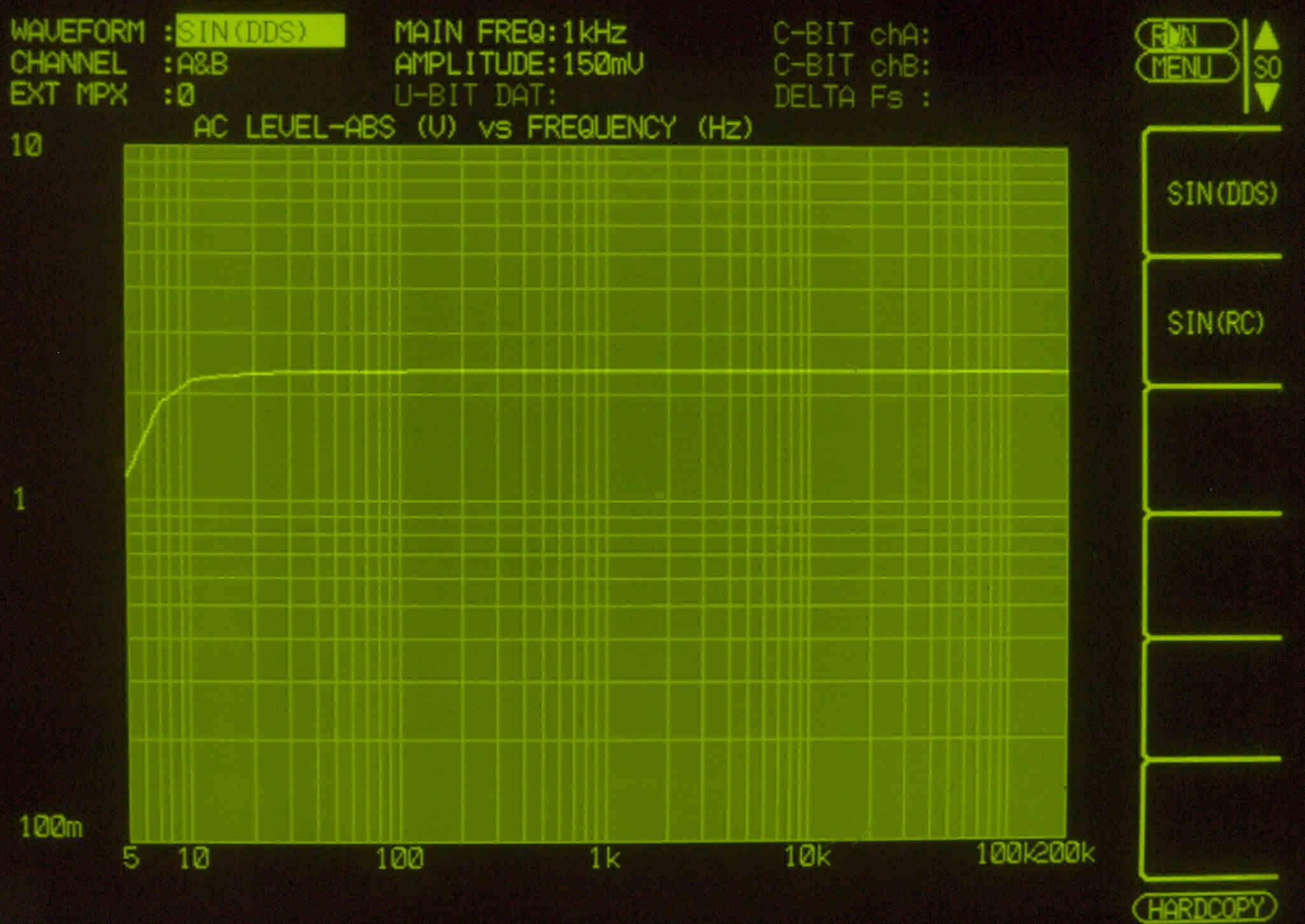 | F. 上位測定器による 調整・測定。 画像をクリックすると、大きく(横幅2050ドット)表示されます。 F1. 下のオーディオアナライザーVP−7732Aで自動測定 |