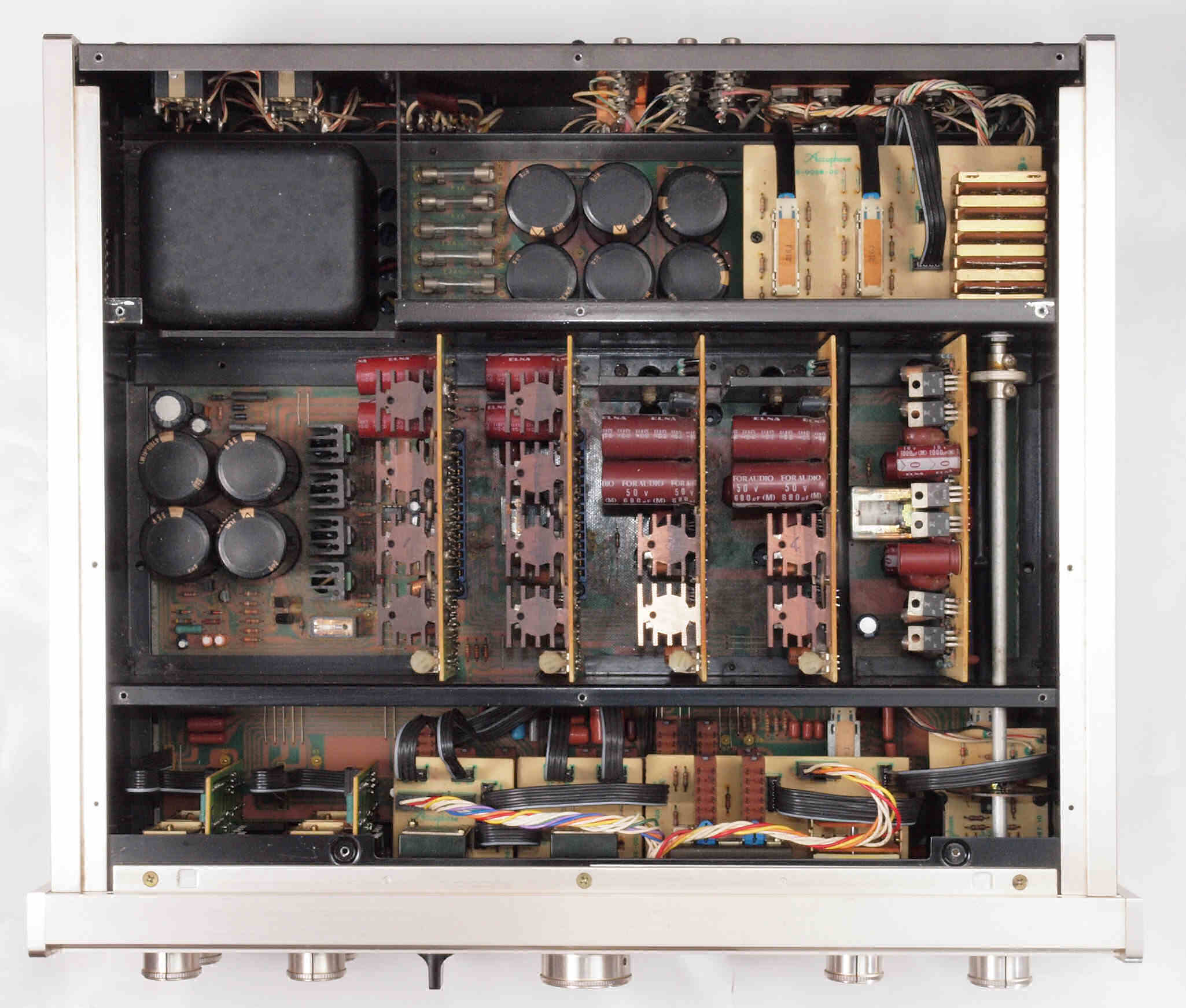 | A72. 点検中 RL側EQ_AMP基板。 終段出力TR(トランジスター)放熱器の比較。上=R側、下=L側 | ||||||||||||||||||||||||||||||||||||||||||||||