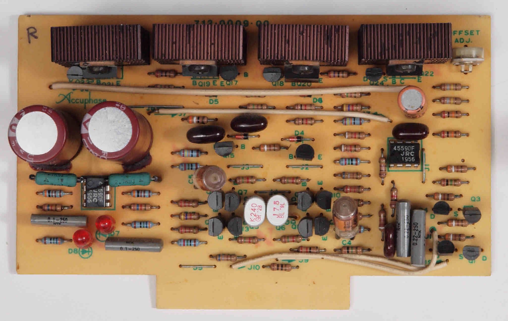| A71. 点検中 L側EQ_AMP基板。 定電圧出力TR(トランジスター)放熱器の色が異なる、高温に焼けた。 | ||||||||||||||||||||||||||||||||||||||||||||||