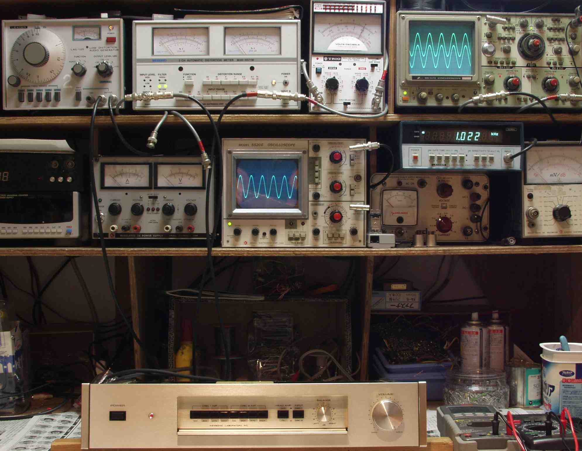上左オーディオ発振器より400HZ・1KHZの信号を出す(歪み率=約0.003%)