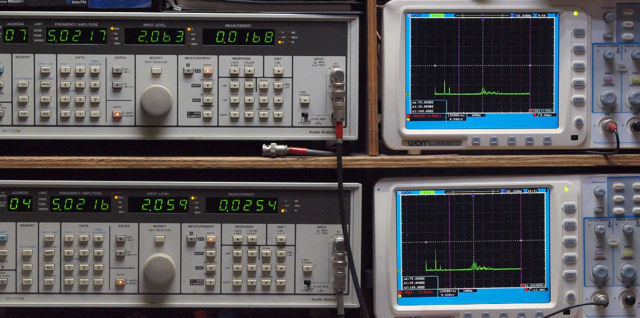 よって、ダイアル設定出力レベルより低くなります。測定機器の仕様や整備の様子はこちら、「VP−7723B」「VP−7201A」。 FFT画面の見方はこちら。