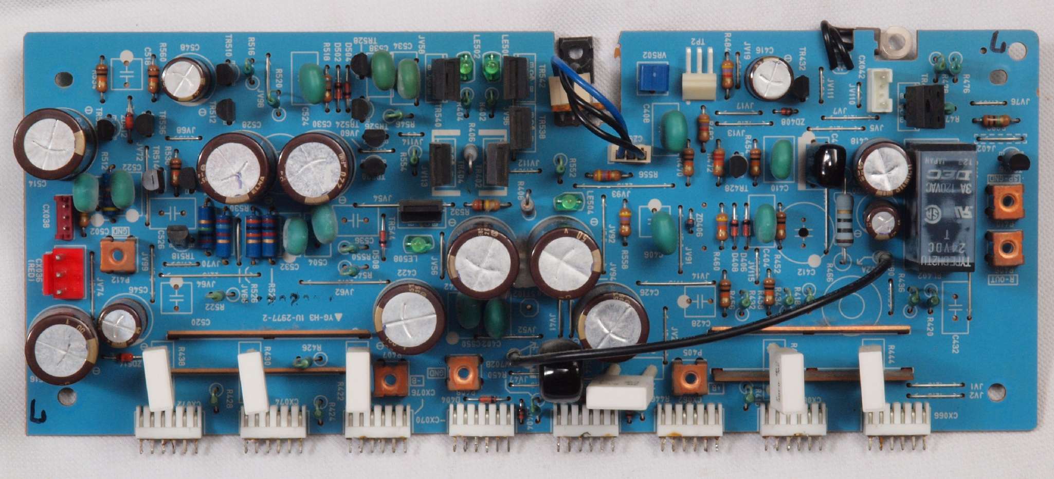 C22. 修理後 左側終段AMP基板。 バイアス調整用半固定VR1個、SP接続リレー1個