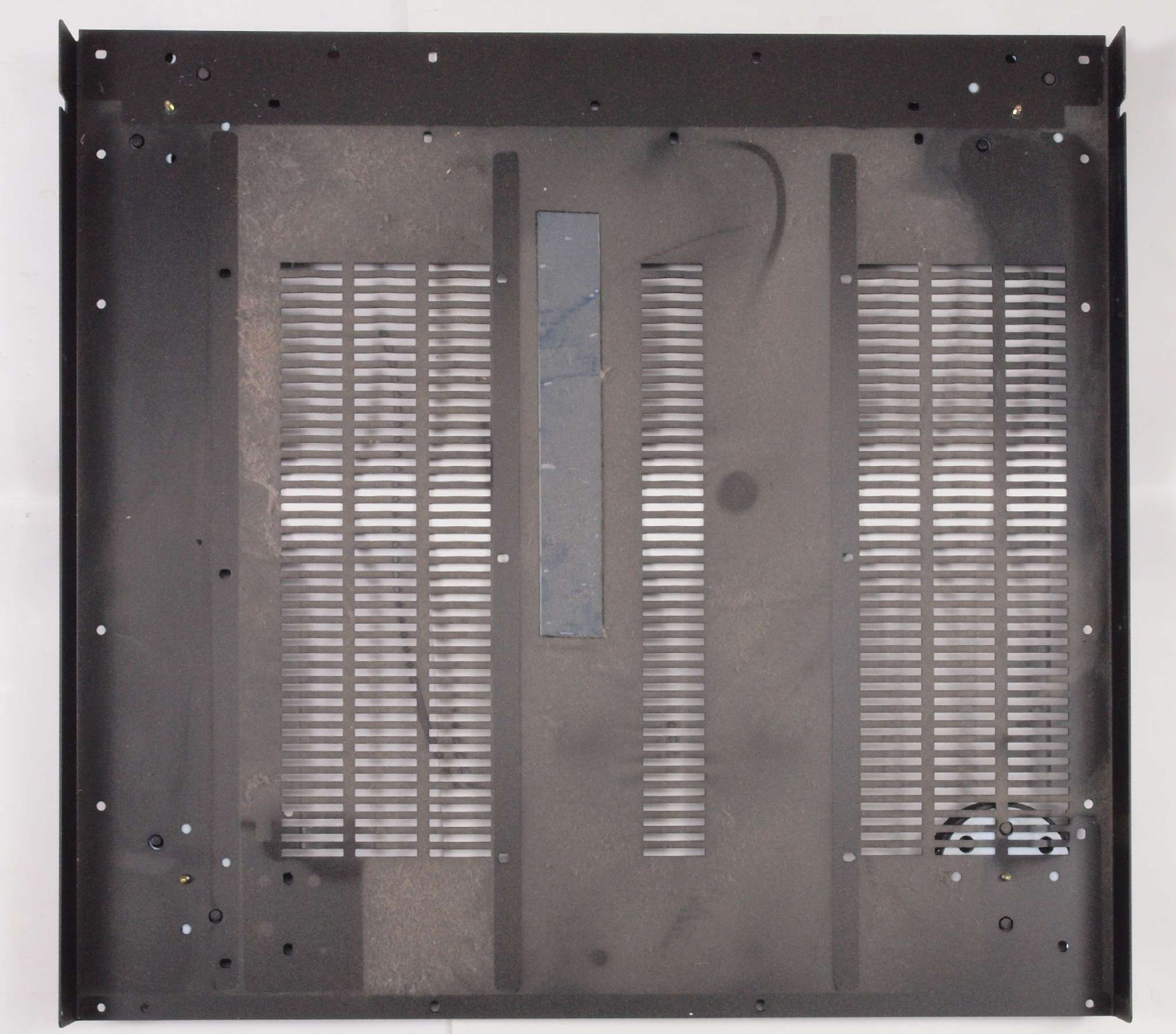 C2. 修理中 基板、前パネルを取りさったシャシを下から見る。