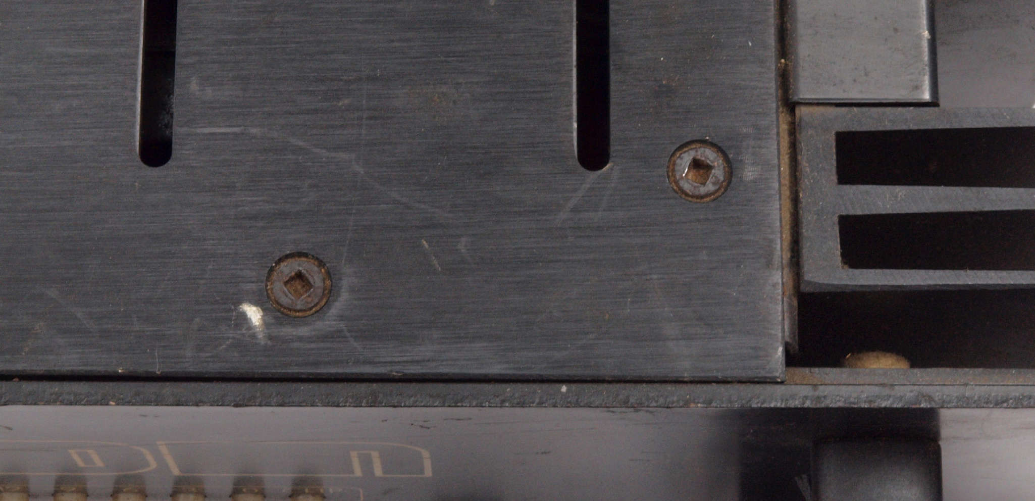 | A54. 点検中 終段TR(トランジスター)の止めビスはマイナスドライバーで軽く回せる。 上蓋の固定ビスとは対称的! |