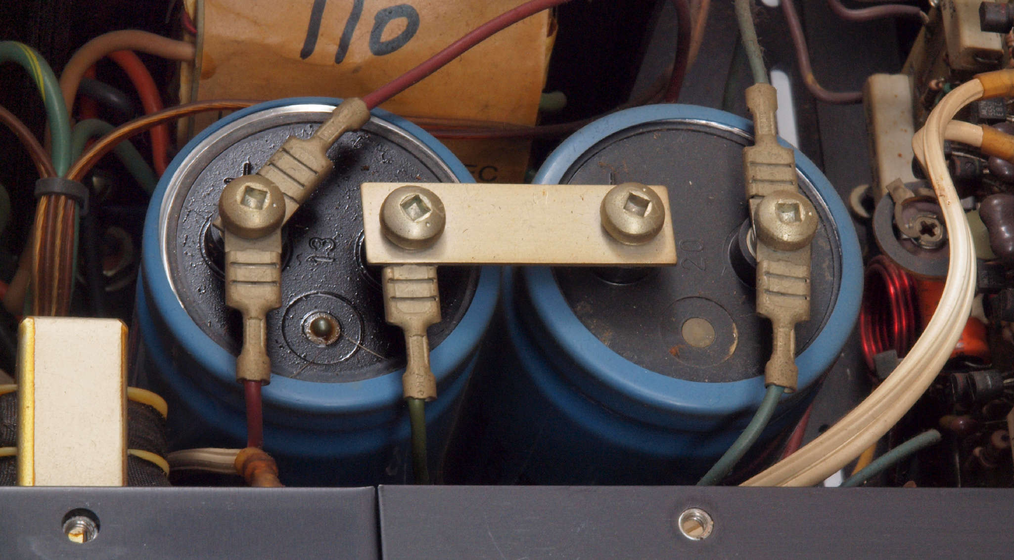 | A47. 点検中 在庫交換可能な電源ブロック電解コンデンサーその2測定=14090μF、ESR=0.1Ω。 | ||||||||||||||||||||||||