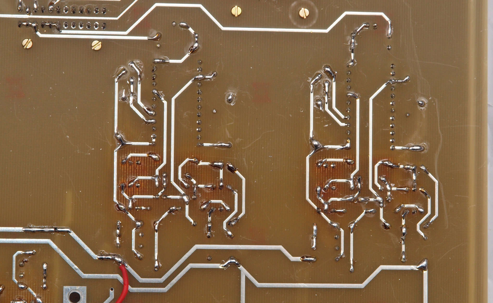 | C24. 修理(半田補正)後 入力アンプ前段基板裏。 全ての半田をやり修す。 | ||||||||||||||||||||||||||||||||||||