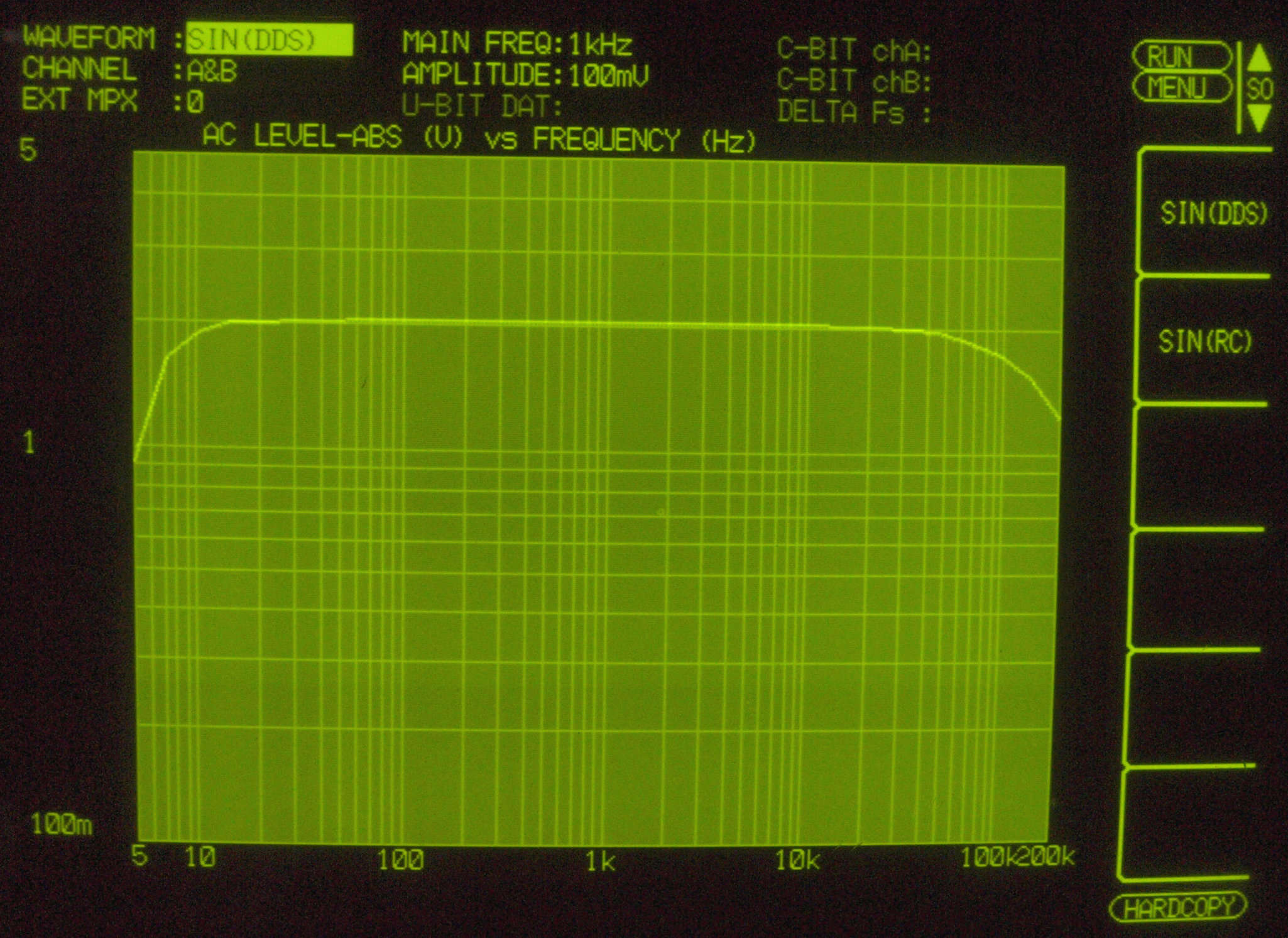 | F. 上位測定器による 調整・測定。 画像をクリックすると、大きく(横幅2050ドット)表示されます。 F0. 下のオーディオアナライザーVP−7732Aで自動測定 |
