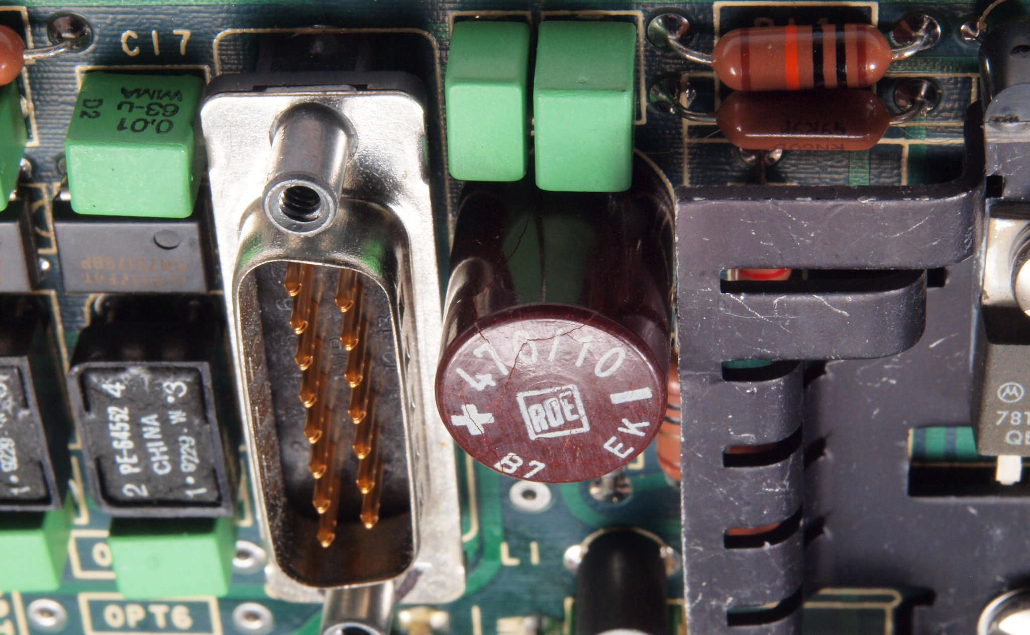 | C21. 修理中 右側アナログAMP入力基板。電解コンデンサーが交換されている。 | ||||||||||||||||||||||||||||||||||