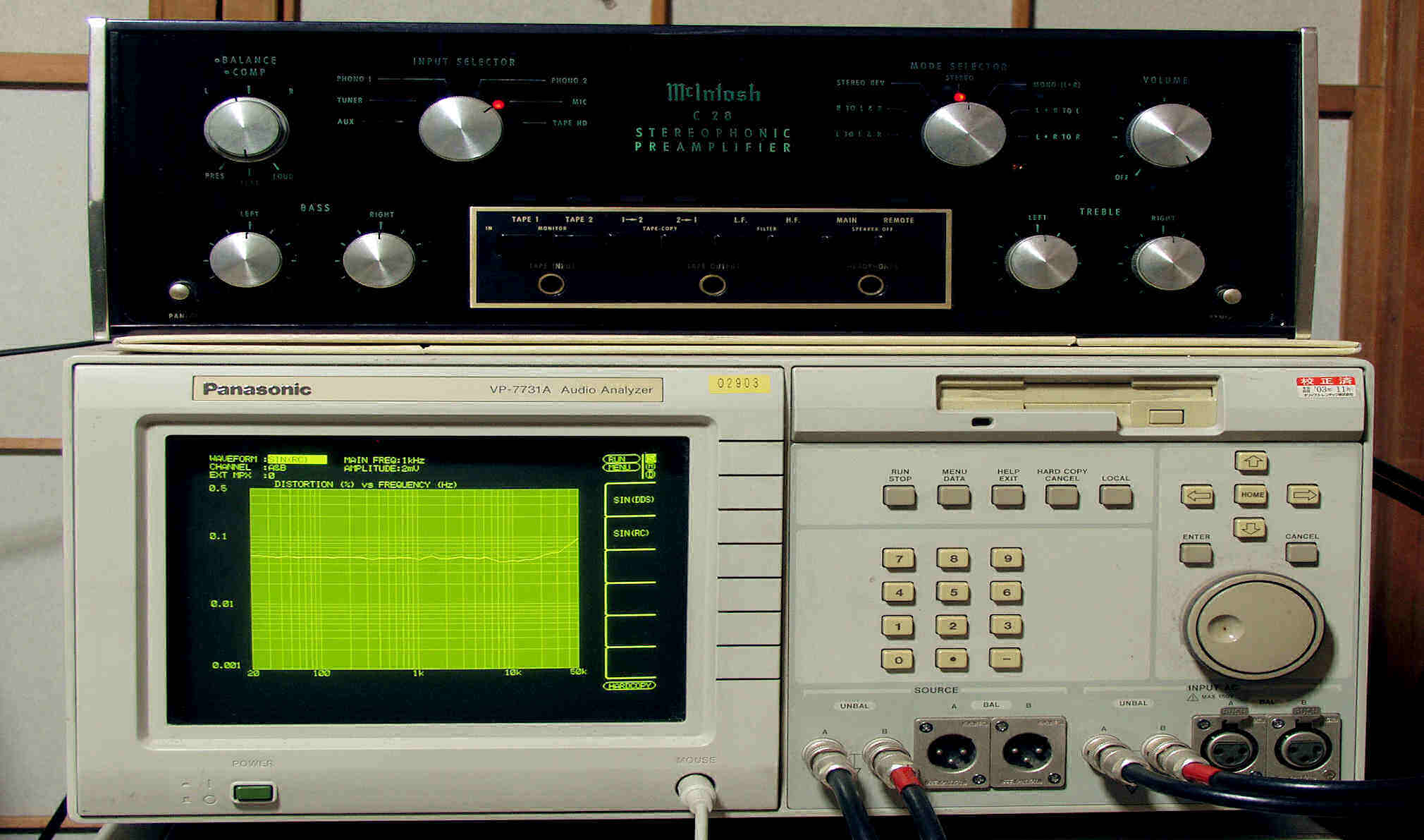 F0. 下のオーディオアナライザーVP−7732Aで自動測定。